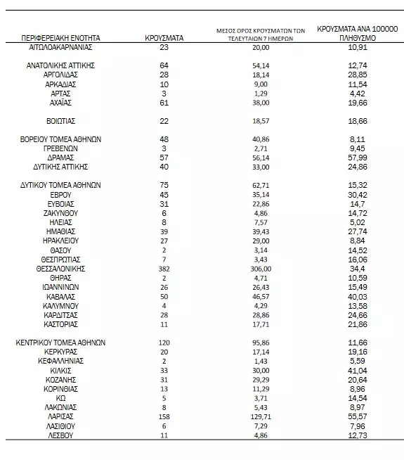 Τα νέα εργαστηριακά επιβεβαιωμένα κρούσματα της νόσου που καταγράφηκαν τις τελευταίες 24 ώρες είναι 2.324 , εκ των οποίων 5 εντοπίστηκαν κατόπιν ελέγχων στις πύλες εισόδου της χώρας.