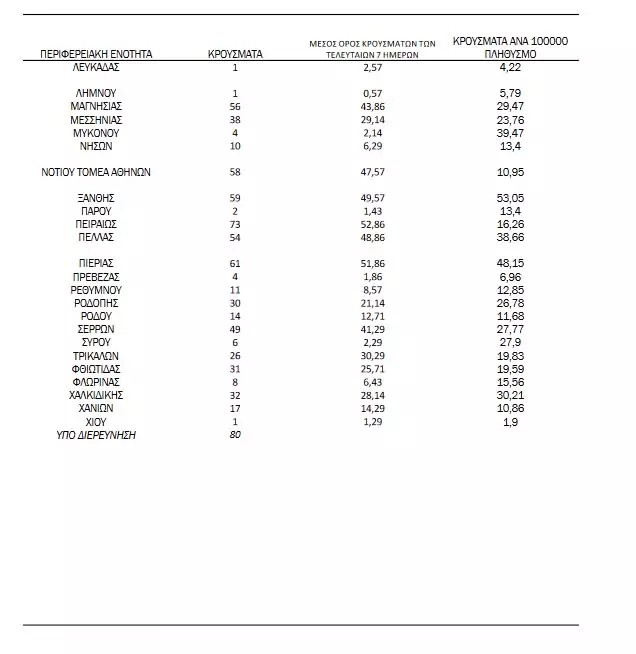 Από αυτά, τα 61 εντοπίστηκαν στην Κρήτη. Ειδικότερα, 27 στο Ηράκλειο, 11 στο Λασίθι, 9 στο Ρέθυμνο και 14 στα Χανιά.