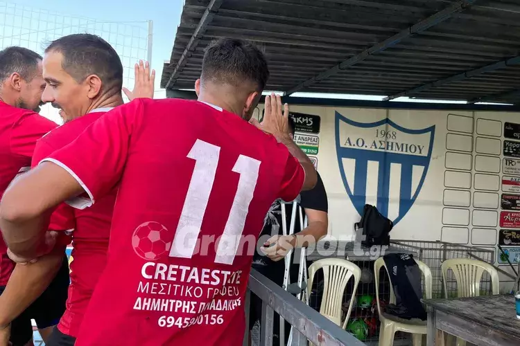 Αμέσως μετά την επίτευξη και του δεύτερου τέρματος και πάλι από τον Μιχάλη Φραγκιαδάκη, ο ίδιος «έτρεξε» αυτή τη φορά να το αφιερώσει σε έναν από τους πιτσιρικάδες της ομάδας, τον Νίκο Κιουμουρτζάκη, που αντιμετωπίζει πρόβλημα τραυματισμού, όμως βρισκόταν στο γήπεδο, για να στηρίξει με τη παρουσία του τους συμπαίκτες του.
