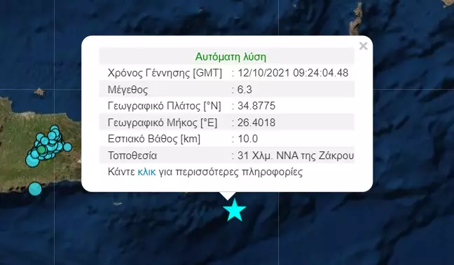 Σύμφωνα με την πρώτη εκτίμηση του Γεωδυναμικού Ινστιτούτου ήταν εντάσεως 6,3 της κλίμακας Ρίχτερ, με επίκεντρο 31 χλμ. ΝΝΑ της Ζάκρου.