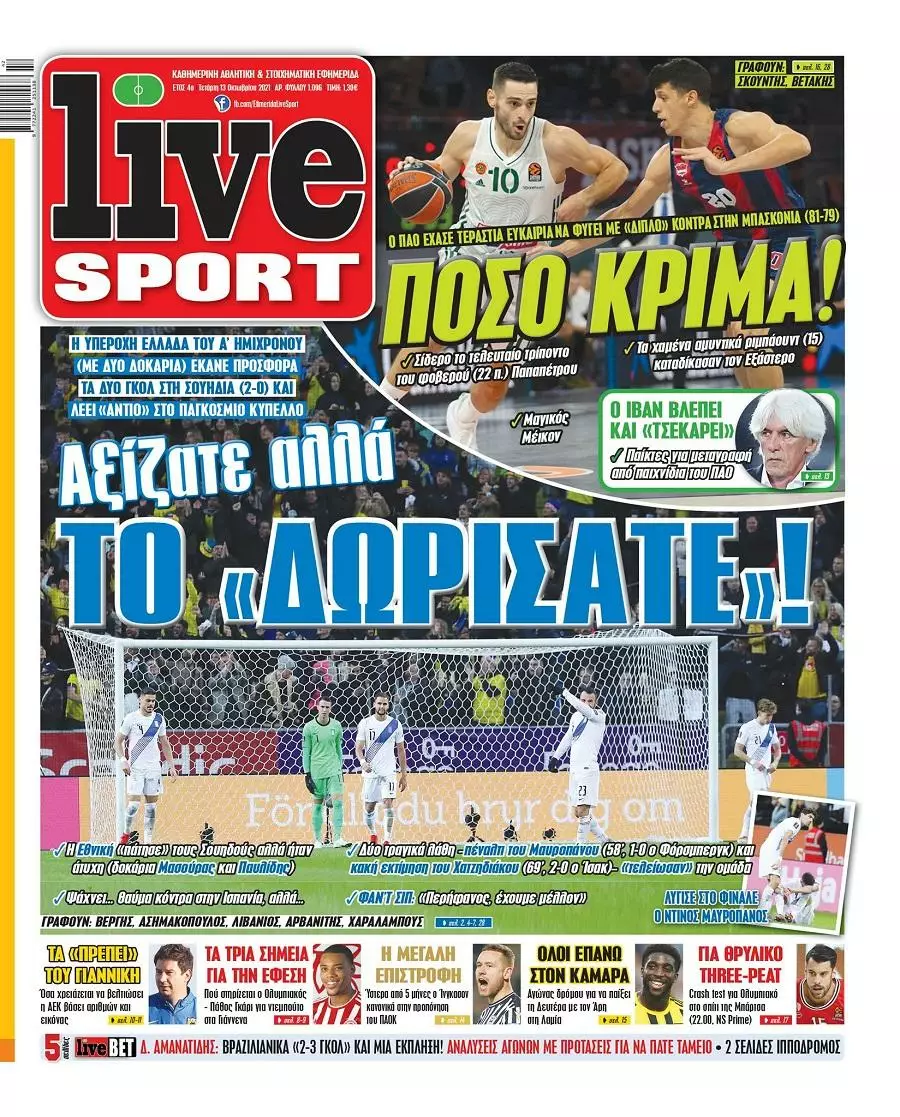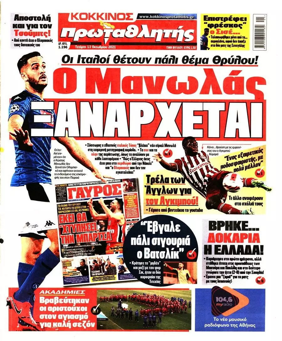 HOT NEWS ΑΝΑΒΟΛΕΣ ΑΓΩΝΩΝ ΔΙΑΙΤΗΤΕΣ ΣΑΒΒΑΤΟΚΥΡΙΑΚΟΥ ΟΡΙΣΜΟΣ ΕΞ' ΑΝΑΒΟΛΗΣ ΕΠΣΗ ΑΠΟΣΤΟΛΗ ΟΦΗ ΓΙΑ ΠΑΝΑΙΤΩΛΙΚΟ ΤΣΙΜΠΙΝΟΣ MVP ΕΦΗΜΕΡΙΔΕΣΚΥΡΙΕΣ ΕΙΔΗΣΕΙΣ Τα πρωτοσέλιδα των αθλητικών εφημερίδων(13/10) Δημοσιογραφικό Τμήμα 13/10/2021 - 09:39 FacebookTwitterWhatsAppLinkedinEmailΤυπώνωCopy URL Δείτε τα πρωτοσέλιδα των αθλητικών εφημερίδων για σήμερα Τετάρτη 13 Οκτωβρίου του 2021. ΔΙΑΒΑΣΤΕ ΕΠΙΣΗΣ: Ηττήθηκε από τον Παναιτωλικό η Κ17 του ΟΦΗ Δ. Στεφανάκης: «Ο καθένας ατομικά και όλοι μαζί για τον Εργοτέλη!» Ν. Ρούκα: «Τιμή μου να φοράω τη βαριά φανέλα του ΠΑΝΟΜ» LIVE οι αγώνες του Σαββάτου (18/10) ΕΠΣΗ: Οι παρατηρητές στους αγώνες του σαββατοκύριακου (18-19/10) Α1 ΕΠΣΗ: Ανοίγει η αυλαία της αγωνιστικής με τρία παιχνίδια ΡΟΗ ΕΙΔΗΣΕΩΝ ΠΟΔΟΣΦΑΙΡΟ Τέλος ο Άγγελος Ποστέκογλου από τη Νότιγχαμ Φόρεστ Δημοσιογραφικό Τμήμα 18/10/2025 16:58 ΟΦΗ Ηττήθηκε από τον Παναιτωλικό η Κ17 του ΟΦΗ Δημήτρης Γιγουρτσής 18/10/2025 15:52 LIVE LIVE οι αγώνες του Σαββάτου (18/10) Δημήτρης Γιγουρτσής 18/10/2025 15:20 ΓΙΟΥΧΤΑΣ Με τρεις σοβαρές απουσίες η αποστολή του Γιούχτα για το Ατσαλένιο Δημήτρης Γιγουρτσής 18/10/2025 14:54 ΟΦΗ Οι παίκτες της Κ17 ΟΦΗ που έχουν δικαίωμα συμμετοχής στην Μικτή Κ16 ΕΠΣΗ Δημήτρης Γιγουρτσής 18/10/2025 14:45 ΕΡΓΟΤΕΛΗΣ Δ. Στεφανάκης: «Ο καθένας ατομικά και όλοι μαζί για τον Εργοτέλη!» Δημήτρης Γιγουρτσής 18/10/2025 14:29 ΠΑΝΟΜ Ν. Ρούκα: «Τιμή μου να φοράω τη βαριά φανέλα του ΠΑΝΟΜ» Μάνος Φουστανάκης 18/10/2025 14:03 Όλες οι ειδήσεις ΔΗΜΟΦΙΛΗ LIVE LIVE οι αγώνες του Σαββάτου (18/10) ΕΠΣ - ΕΠΟ ΕΠΣΗ: Οι παρατηρητές στους αγώνες του σαββατοκύριακου (18-19/10) Α1 ΕΠΣΗ Α1 ΕΠΣΗ: Ανοίγει η αυλαία της αγωνιστικής με τρία παιχνίδια ΥΠΟΔΟΜΕΣ Νίκη για την Κ15 του ΟΦΗ με «χρυσή» αλλαγή τον Μ. Παναγιωτάκη ΟΦΗ Εικόνες απο τη νίκη της Κ15 του ΟΦΗ επί του Παναιτωλικού