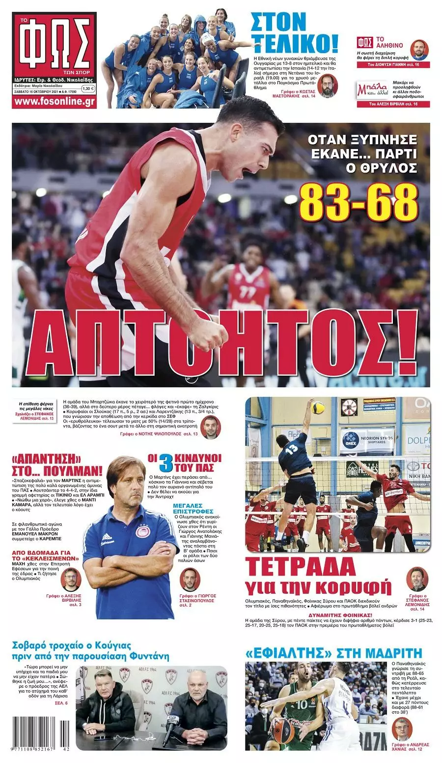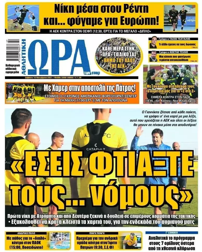 HOT NEWS ΑΠΟΤΕΛΕΣΜΑΤΑ ΣΑΒΒΑΤΟΥ ΧΩΡΙΣ ΜΑΝΟ Ο ΓΙΟΥΧΤΑΣ ΗΤΤΑ Κ19 ΟΦΗ ΣΠΟΥΔΑΙΟΣ ΒΑΘΜΟΣ ΜΟΧΟΥ ΕΦΗΜΕΡΙΔΕΣΚΥΡΙΕΣ ΕΙΔΗΣΕΙΣ Τα πρωτοσέλιδα των αθλητικών εφημερίδων(16/10) Δημοσιογραφικό Τμήμα 16/10/2021 - 09:42 FacebookTwitterWhatsAppLinkedinEmailΤυπώνωCopy URL Δείτε τα πρωτοσέλιδα των αθλητικών εφημερίδων για σήμερα Σάββατο 16 Οκτωβρίου του 2021. ΔΙΑΒΑΣΤΕ ΕΠΙΣΗΣ: Β. Πρινάρης: «Στο δεύτερο ημίχρονο ήμασταν πιο απλοί και αποφασιστικοί» Χερσόνησος-Μοχός 3-3: Τα highlights του αγώνα (vid) Τα highlights της ήττας του ΟΦΗ από τον Ατρόμητο (vid) Τα αποτελέσματα του Σαββάτου (25/10) και το πρόγραμμα της Κυριακής (26/10) Α1 ΕΠΣΗ: Σπουδαίος βαθμός για Μοχό, γλύτωσε την ήττα η ΑΕΚ, τρίποντα για Ρωμανό και Ρούβα Σπουδαίος βαθμός για τον Μοχό στις καθυστερήσεις στο ντέρμπι με τη Χερσόνησο! ΡΟΗ ΕΙΔΗΣΕΩΝ ΚΕΡΑΥΝΟΣ Β. Πρινάρης: «Στο δεύτερο ημίχρονο ήμασταν πιο απλοί και αποφασιστικοί» Δημοσιογραφικό Τμήμα 25/10/2025 23:59 ΟΦΗ Σε τεντωμένο σχοινί ο Ράσταβατς μετά τη νέα ήττα – Εξελίξεις στον ΟΦΗ Κώστας Μεταξάκης 25/10/2025 23:52 ΧΕΡΣΟΝΗΣΟΣ Χερσόνησος-Μοχός 3-3: Τα highlights του αγώνα (vid) Δημοσιογραφικό Τμήμα 25/10/2025 23:44 ΟΦΗ Τα highlights της ήττας του ΟΦΗ από τον Ατρόμητο (vid) Πολυχρόνης Αγγελάκης 25/10/2025 23:24 ΑΓΙΟΣ ΙΩΑΝΝΗΣ FC Γ. Φασουλάκης: «Σίγουρα ήμασταν σε κακή μέρα, δεν μας βγήκε τίποτα» Πολυχρόνης Αγγελάκης 25/10/2025 22:55 ΟΦΗ Μ. Ράσταβατς: «Πρέπει να βρούμε τον τρόπο για να κάνουμε νίκες» Πολυχρόνης Αγγελάκης 25/10/2025 22:48 ΟΦΗ Γ. Αποστολάκης: «Θα το ξεπεράσουμε όλοι μαζί» Πολυχρόνης Αγγελάκης 25/10/2025 22:19 Όλες οι ειδήσεις ΔΗΜΟΦΙΛΗ Α1 ΕΠΣΗ Τα αποτελέσματα του Σαββάτου (25/10) και το πρόγραμμα της Κυριακής (26/10) Α1 ΕΠΣΗ Α1 ΕΠΣΗ: Σπουδαίος βαθμός για Μοχό, γλύτωσε την ήττα η ΑΕΚ, τρίποντα για Ρωμανό και Ρούβα ΧΕΡΣΟΝΗΣΟΣ Σπουδαίος βαθμός για τον Μοχό στις καθυστερήσεις στο ντέρμπι με τη Χερσόνησο! ΠΑΛΙΑΝΗ Αγωνίζεται με φανέλες της Μινωικής η Παλιανή! ΟΦΗ Δεν τα κατάφερε απέναντι στον Ατρόμητο η Κ19 του ΟΦΗ