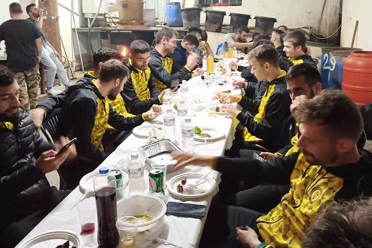 Σύσσωμο το ποδοσφαιρικό τμήμα και μέλη της διοίκησης, παρευρέθηκαν στο ρακοκάζανο του Νίκου Σταυρακάκη, ο οποίος έκανε το τραπέζι στους «κιτρινόμαυρους».