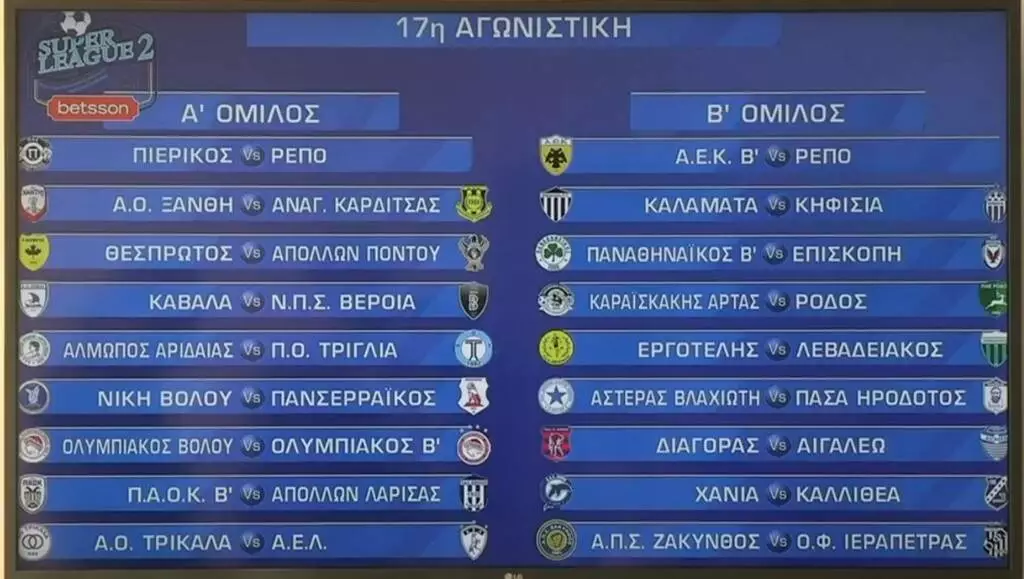 Δείτε το πλήρες πρόγραμμα της Super League 2: