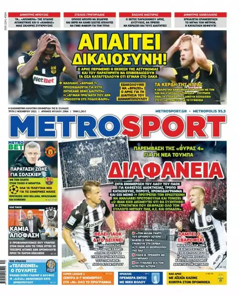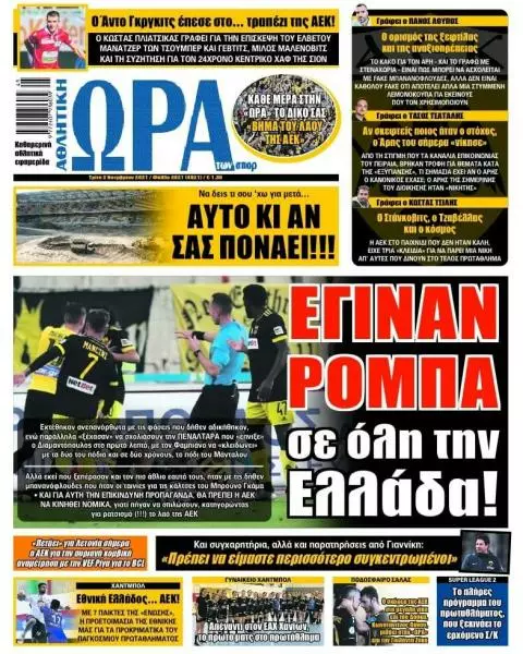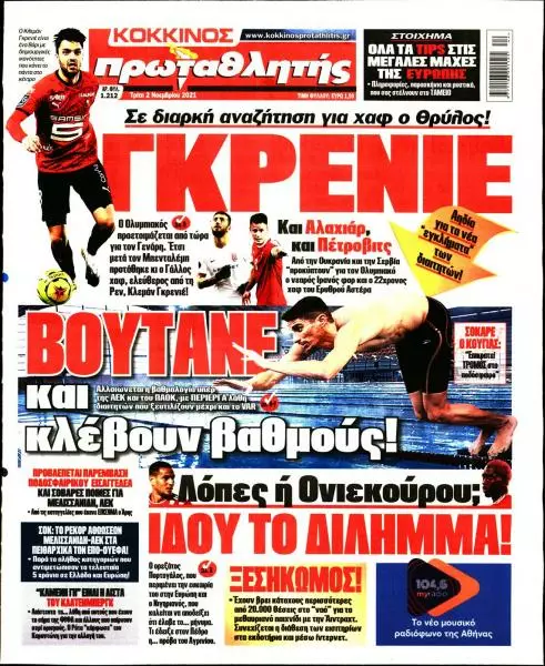 Τα αθλητικά πρωτοσέλιδα της Τρίτης 2/11