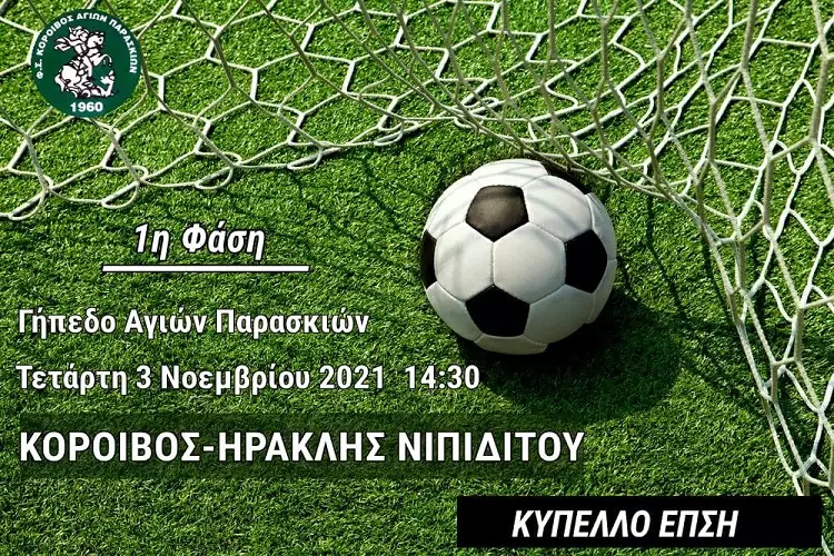 Στην ανάρτησή του ο Κόροιβος αναφέρει: «Το Φ.Σ. Κόροιβος σας προσκαλεί στον πρώτο εντός έδρας αγώνα της 1ης φάσης του Κυπέλλου ΕΠΣΗ, την Τέταρτη 3 Νοεμβρίου 2021 και ώρα 14:30 στο Γήπεδο Αγιών Παρασκιών.