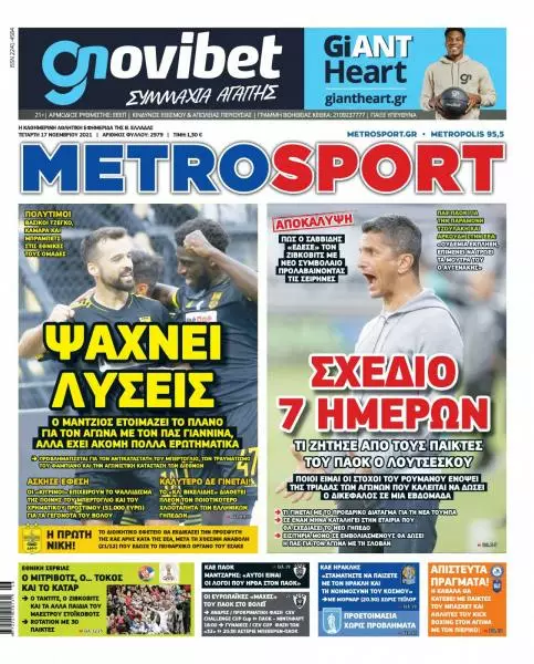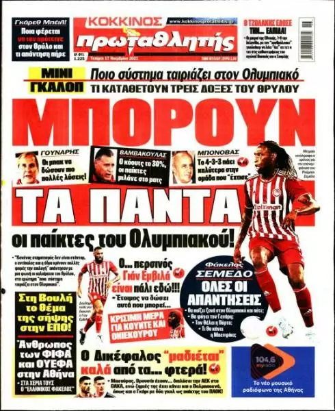 Τα αθλητικά πρωτοσέλιδα της Τετάρτης (17/11)