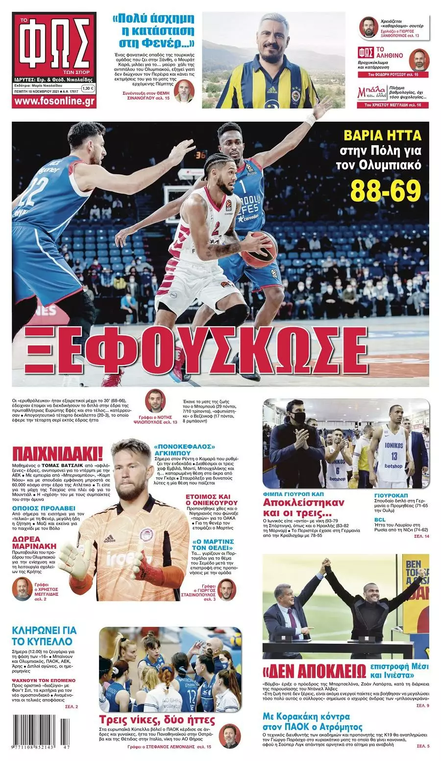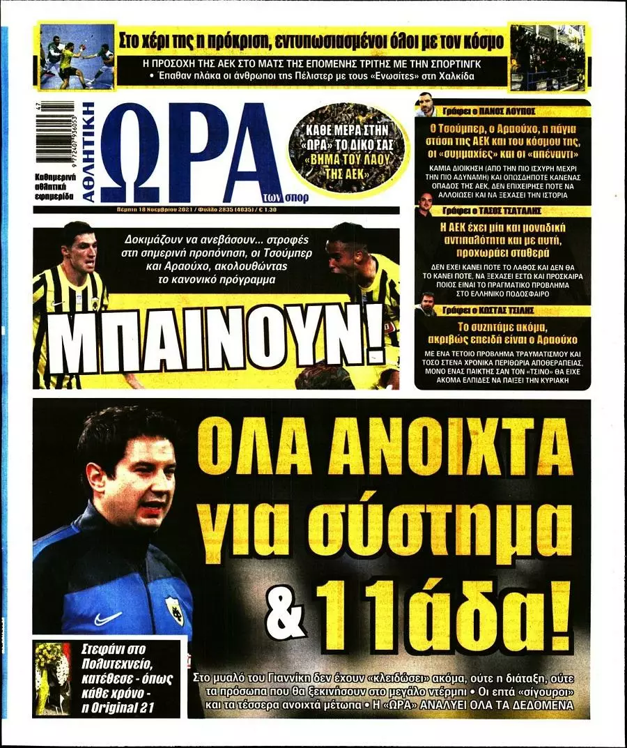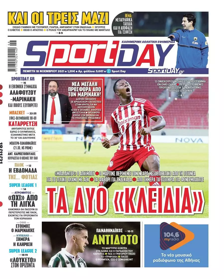 Δείτε τα πρωτοσέλιδα των αθλητικών εφημερίδων για σήμερα Πέμπτη 18 Νοεμβρίου του 2021.