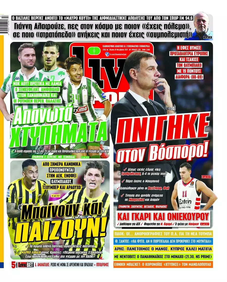 Τα πρωτοσέλιδα των αθλητικών εφημερίδων(18/11)