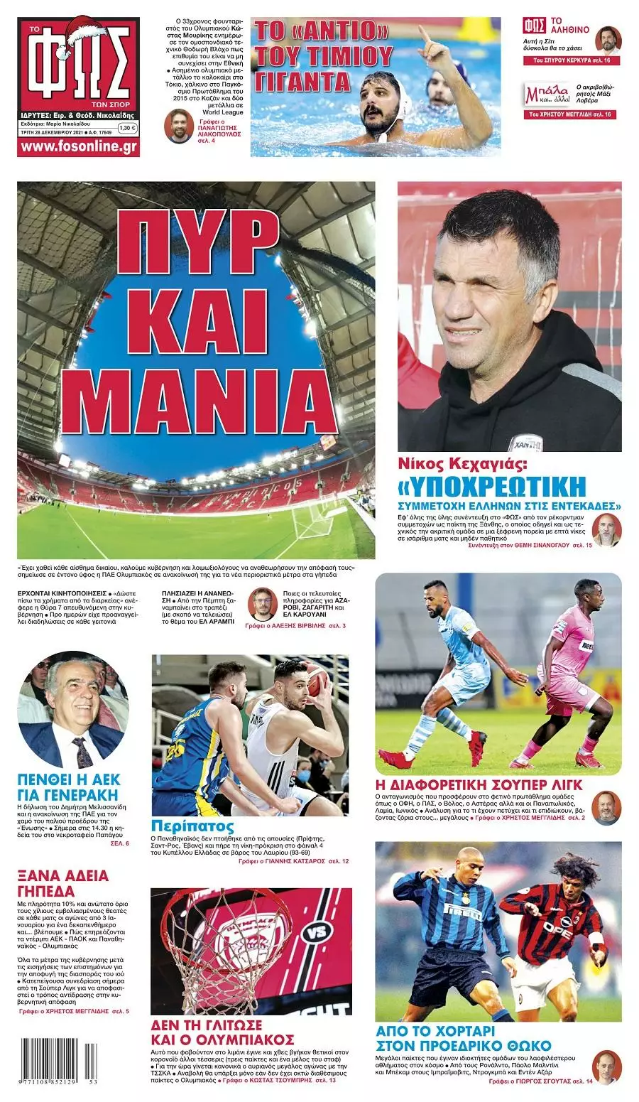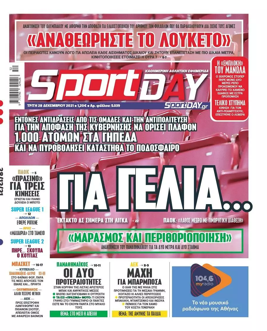 HOT NEWS ΔΙΑΙΤΗΤΕΣ ΤΕΤΑΡΤΗΣ ΕΦΥΓΕ Ο ΓΙΑΝΝΗΣ ΦΛΟΥΡΗΣ Λ. ΚΑΛΟΜΟΙΡΗΣ Κ13 ΓΚΛΑΝΤΜΠΑΧ ΠΕΤΟΥΣΗΣ Κ17 ΕΘΝΙΚΗ ΠΑΡΑΙΤΗΣΗ ΚΟΝΤΑΚΗ ΕΦΗΜΕΡΙΔΕΣΚΥΡΙΕΣ ΕΙΔΗΣΕΙΣ Τα πρωτοσέλιδα των αθλητικών εφημερίδων (28/12) Δημοσιογραφικό Τμήμα 28/12/2021 - 09:52 FacebookTwitterWhatsAppLinkedinEmailΤυπώνωCopy URL Δείτε τα πρωτοσέλιδα των αθλητικών εφημερίδων για σήμερα Τρίτη 28 Δεκεμβρίου του 2021. ΔΙΑΒΑΣΤΕ ΕΠΙΣΗΣ: Κύπελλο ΕΠΣΗ: Δυο παιχνίδια για την 1η φάση περιλαμβάνει το πρόγραμμα Οι αθλητικές μεταδόσεις της ημέρας (15/10) Ο καιρός την Τετάρτη 15 Οκτωβρίου (vid) Θλίψη στο Ηρακλειώτικο ποδόσφαιρο: Έφυγε από τη ζωή ο Γιάννης Φλουρής Υπέβαλε την παραίτηση του ο Κοντάκης – Δεν έγινε δεκτή από τα Δειλινά ΕΠΣΗ: Οι παρατηρητές στους αγώνες της Τετάρτης (15/10) ΡΟΗ ΕΙΔΗΣΕΩΝ ΚΥΠΕΛΛΟ ΕΠΣΗ Κύπελλο ΕΠΣΗ: Δυο παιχνίδια για την 1η φάση περιλαμβάνει το πρόγραμμα Μάνος Φουστανάκης 15/10/2025 09:40 Α2 ΕΠΣΗ A2 ΕΠΣΗ: Σέντρα στο εξ αναβολής παιχνίδι Μάνος Φουστανάκης 15/10/2025 09:20 Α1 ΕΠΣΗ Α1 ΕΠΣΗ: Δράση σε Μαρτινέγκο και Κρουσώνα Δημήτρης Γιγουρτσής 15/10/2025 09:00 ΜΕΤΑΔΟΣΕΙΣ Οι αθλητικές μεταδόσεις της ημέρας (15/10) Δημοσιογραφικό Τμήμα 15/10/2025 08:30 ΚΑΙΡΟΣ Ο καιρός την Τετάρτη 15 Οκτωβρίου (vid) Δημοσιογραφικό Τμήμα 15/10/2025 08:00 ΠΑΙΔΕΣ ΗΡΟΔΟΤΟΥ Κρατάνε το καλό διάστημα στους Παίδες Ηροδότου Μάνος Φουστανάκης 14/10/2025 23:00 ΑΟΤ Επέστρεψε στις νίκες και βλέπει ΠΑΟΚρουσώνα ο ΑΟΤ Μάνος Φουστανάκης 14/10/2025 22:30 Όλες οι ειδήσεις ΔΗΜΟΦΙΛΗ ΕΠΣ - ΕΠΟ Θλίψη στο Ηρακλειώτικο ποδόσφαιρο: Έφυγε από τη ζωή ο Γιάννης Φλουρής ΔΕΙΛΙΝΑ Υπέβαλε την παραίτηση του ο Κοντάκης – Δεν έγινε δεκτή από τα Δειλινά ΕΠΣ - ΕΠΟ ΕΠΣΗ: Οι παρατηρητές στους αγώνες της Τετάρτης (15/10) ΠΑΡΑΣΚΗΝΙΟ Αύριο το τελευταίο αντίο στον Γιάννη Φλουρή ΜΙΚΤΕΣ Μεγάλη συμμετοχή στις προπονήσεις προεπιλογής Κ14 και Κ16 της ΕΠΣΗ