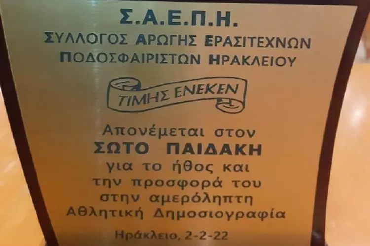 Προς τιμήν του εκλιπόντα, μάλιστα, υπήρχαν φανέλες με το όνομα του και το Νο «11» στην πλάτη. Κατά τη διάρκεια της βραδιάς, έγιναν και βραβεύσεις. Συγκεκριμένα, ο ΣΑΕΠΗ απένειμε τιμητική πλακέτα στον παλαίμαχο ποδοσφαιριστή, Μανόλη Ντάγκινη, για την προσφορά του στον χώρο, αλλά και σε μία μεγάλη μορφή της αθλητικής δημοσιογραφίας, τον Σώτο Παιδάκη.