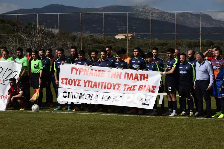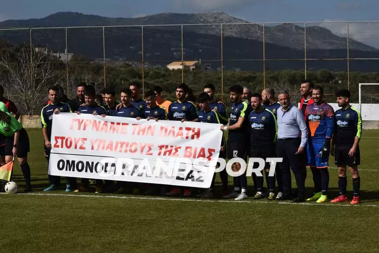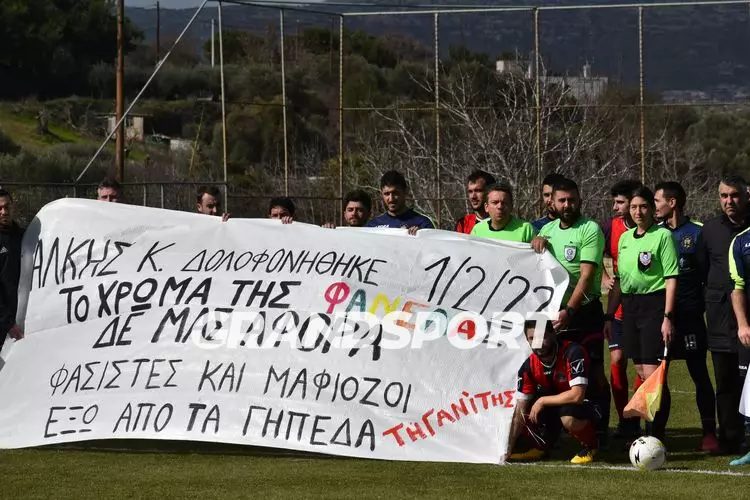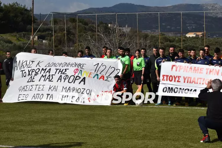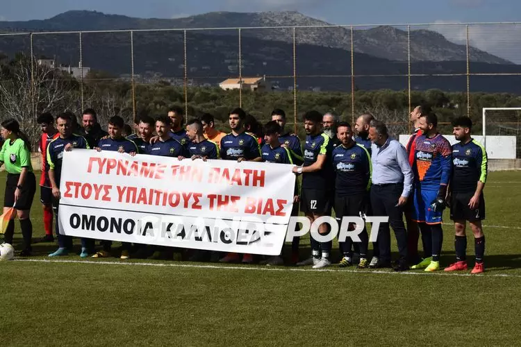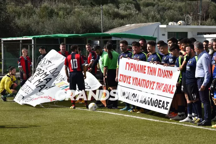Ένα ιδιαίτερα όμορφο στιγμιότυπο, αποτυπώθηκε πριν την έναρξη του αγώνα ανάμεσα στην Ομόνοια Καλλιθέας και τον Τηγανίτη για την Β1 ΕΠΣΗ, με τις δύο ομάδες, σύσσωμες, να αναρτούν πανό, ενάντια στη Βία.