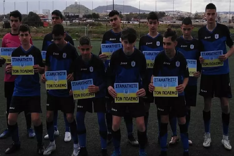 Ένα ιδιαίτερα όμορφο στιγμιότυπο, αποτυπώθηκε πριν την έναρξη του αγώνα ανάμεσα στις Ελπίδες Ηροδότου με τον Άρη Ρεθύμνου, με τις δύο ομάδες, σύσσωμες, να αναρτούν πανό, ενάντια στον πόλεμο.