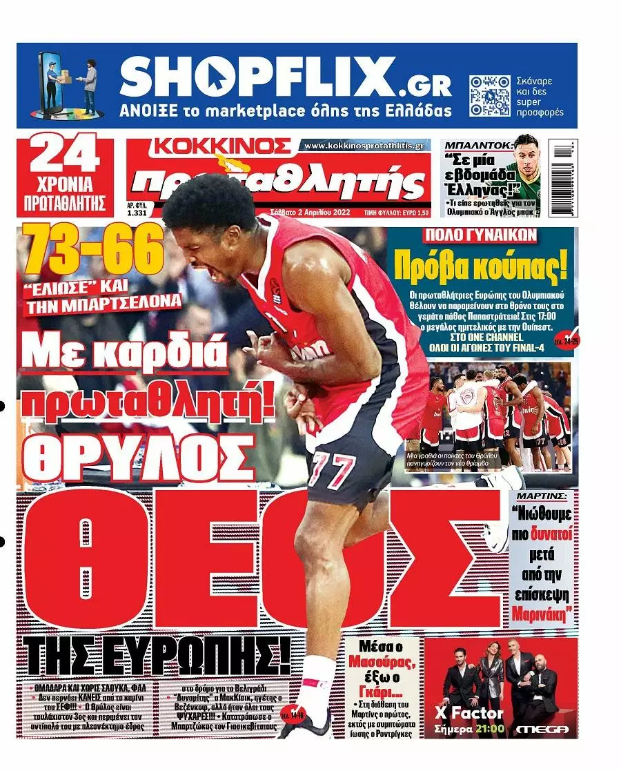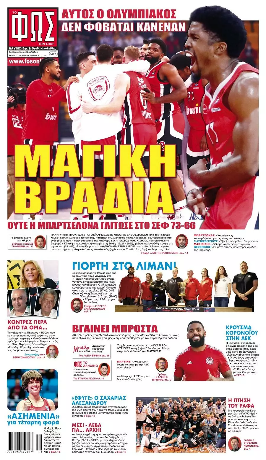 Τα πρωτοσέλιδα των αθλητικών εφημερίδων (02/04)