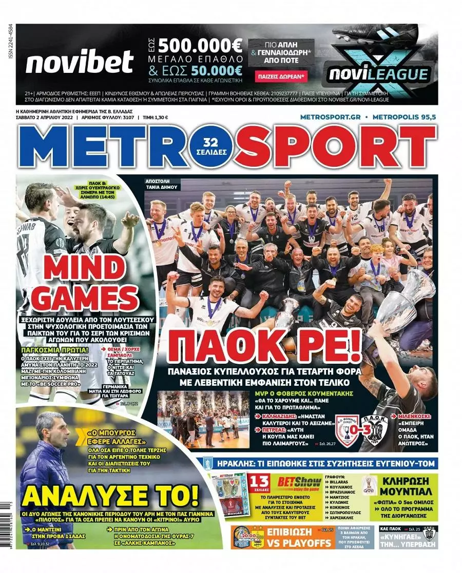 Δείτε τα πρωτοσέλιδα των αθλητικών εφημερίδων για σήμερα Σάββατο 4 Απριλίου του 2022.