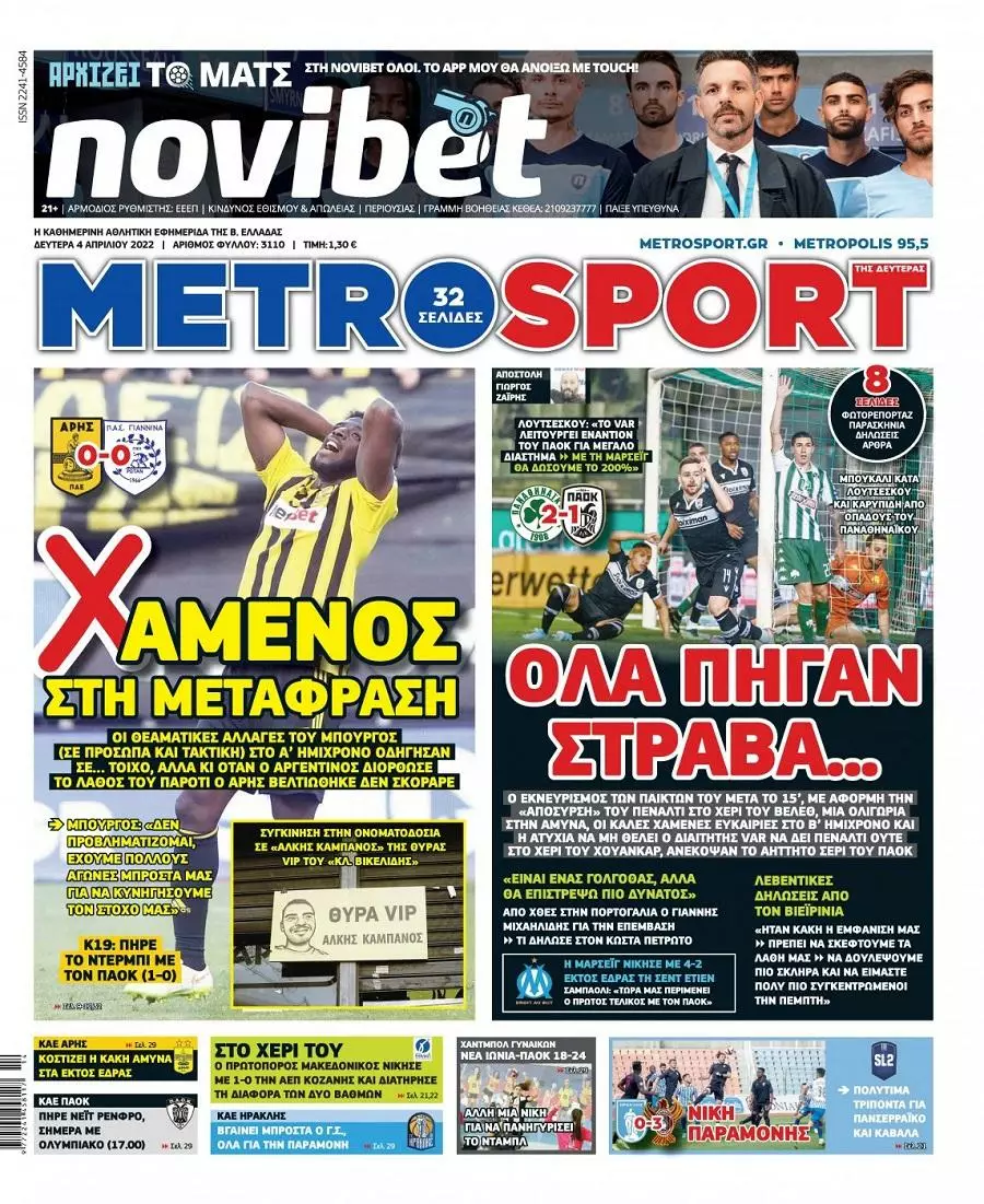 HOT NEWS ΠΡΟΓΡΑΜΜΑ ΤΕΤΑΡΤΗΣ MVP Α1 ΕΠΣΗ ΝΕΑ ΗΤΤΑ ΓΙΑ ΤΟΝ ΟΦΗ ΒΑΘΜΟΛΟΓΙΚΗ ΚΑΤΡΑΚΥΛΑ Ο ΟΦΗ ΕΦΗΜΕΡΙΔΕΣΚΥΡΙΕΣ ΕΙΔΗΣΕΙΣ Τα πρωτοσέλιδα των αθλητικών εφημερίδων (04/04) Δημοσιογραφικό Τμήμα 04/04/2022 - 09:16 FacebookTwitterWhatsAppLinkedinEmailΤυπώνωCopy URL Δείτε τα πρωτοσέλιδα των αθλητικών εφημερίδων για σήμερα Δευτέρα 4 Απριλίου του 2022. ΔΙΑΒΑΣΤΕ ΕΠΙΣΗΣ: Το δυνατό ξεκίνημα του Αλεξάκη στη Γαρίπα Αγωνία στον Ανθεστίωνα για τον τραυματισμό του Ραφαέλο Χότζα Τελευταία προπόνηση και αποστολή για την Μικτή Κ16 ενόψει Λασιθίου «Βόμβες» Σούντγκρεν για Βόλος-Σέρρες: «Ντρέπομαι, στήσαμε τα δύο ματς με 3-0 για να πέσει η Καλλιθέα»! «Μετακομίζει» εκτός Τυμπακίου ο ΑΟΤ Άκης Κουράκης: Δεύτερη «εξάρα» για τη μηχανή των γκολ του ΠΑΟΚ! ΡΟΗ ΕΙΔΗΣΕΩΝ ΓΑΡΙΠΑ Το δυνατό ξεκίνημα του Αλεξάκη στη Γαρίπα Πολυχρόνης Αγγελάκης 04/11/2025 10:00 ΑΝΘΕΣΤΙΩΝ Αγωνία στον Ανθεστίωνα για τον τραυματισμό του Ραφαέλο Χότζα Δημοσιογραφικό Τμήμα 04/11/2025 09:30 Α1 ΕΠΣΗ ΕΠΣΗ: Το πρόγραμμα του σαββατοκύριακου (8-9/11) Πολυχρόνης Αγγελάκης 04/11/2025 09:00 ΜΙΚΤΕΣ Τελευταία προπόνηση και αποστολή για την Μικτή Κ16 ενόψει Λασιθίου Πολυχρόνης Αγγελάκης 04/11/2025 09:00 ΟΦΗ ΟΦΗ: Τα έψαλλαν σε παίκτες και διοίκηση στο αεροδρόμιο Ηρακλείου Δημοσιογραφικό Τμήμα 04/11/2025 08:49 ΜΕΤΑΔΟΣΕΙΣ Οι αθλητικές μεταδόσεις της ημέρας (4/11) – Που θα δείτε το Ολυμπιακός-Αϊντχόφεν Πολυχρόνης Αγγελάκης 04/11/2025 08:30 ΚΑΙΡΟΣ Ο καιρός σήμερα (4/11) Πολυχρόνης Αγγελάκης 04/11/2025 08:00 Όλες οι ειδήσεις ΔΗΜΟΦΙΛΗ SUPER LEAGUE 1 «Βόμβες» Σούντγκρεν για Βόλος-Σέρρες: «Ντρέπομαι, στήσαμε τα δύο ματς με 3-0 για να πέσει η Καλλιθέα»! ΑΟΤ «Μετακομίζει» εκτός Τυμπακίου ο ΑΟΤ ΠΑΟΚ Άκης Κουράκης: Δεύτερη «εξάρα» για τη μηχανή των γκολ του ΠΑΟΚ! ΜΟΙΡΕΣ Στροφή στο ντέρμπι με Φαιστό, “νέο” πρόσωπο στις προπονήσεις ΟΦΗ «Περιοδεύων θίασος» ο ΟΦΗ – Νέα ντροπιαστική ήττα, νέα αποβολή Νους!