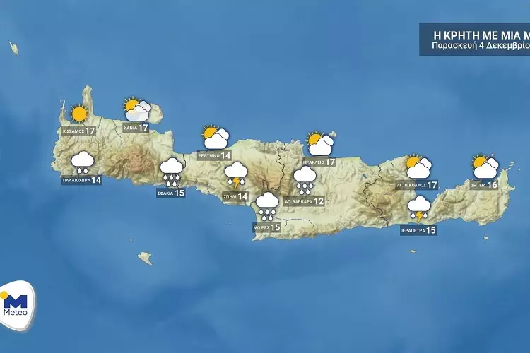 Παρακολουθείστε στο παρακάτω βίντεο, αναλυτικά την ημερήσια πρόγνωση καιρού στην Κρήτη, για σήμερα Παρασκευή, 4 Δεκεμβρίου.