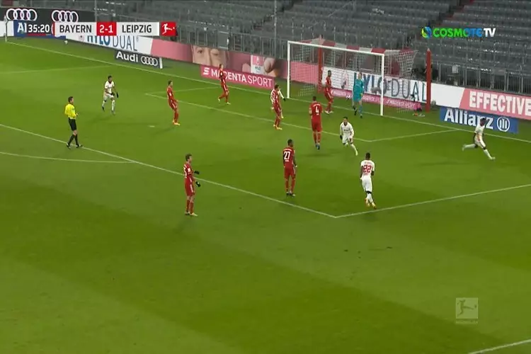 Μπορεί η Λειψία να πήρε προβάδισμα στο σκορ, ωστόσο η Μπάγερν μέσα σε τέσσερα λεπτά κατάφερε να γυρίσει τούμπα το παιχνίδι με γκολ των Μουσιάλα και Μίλερ, για να έρθει ο Κλάιφερτ να κάνει το 2-2.