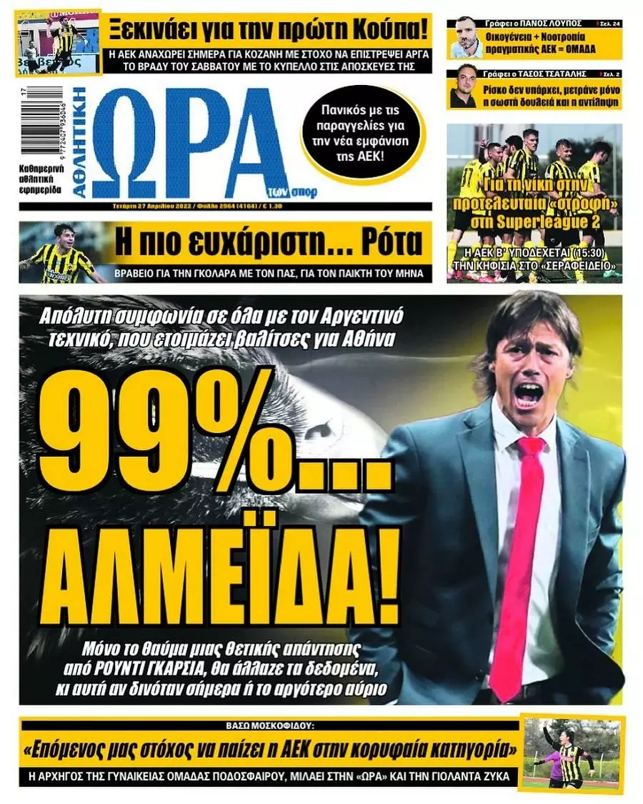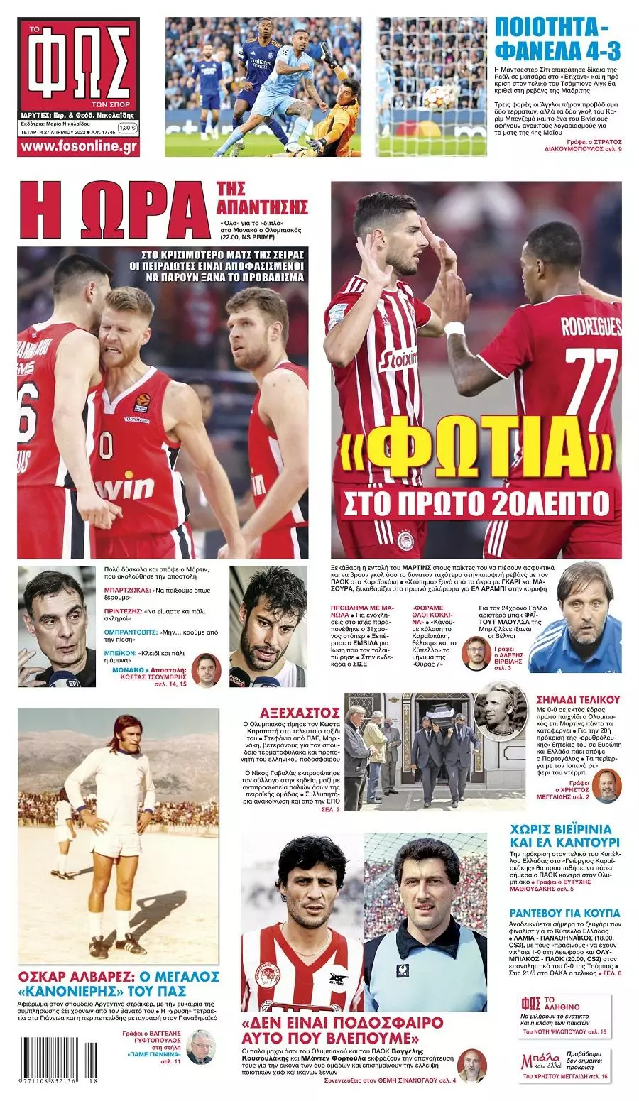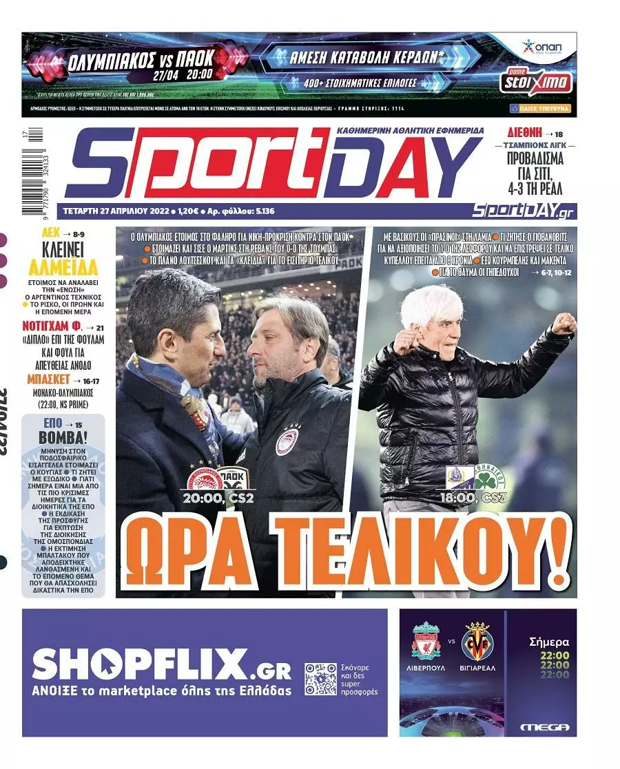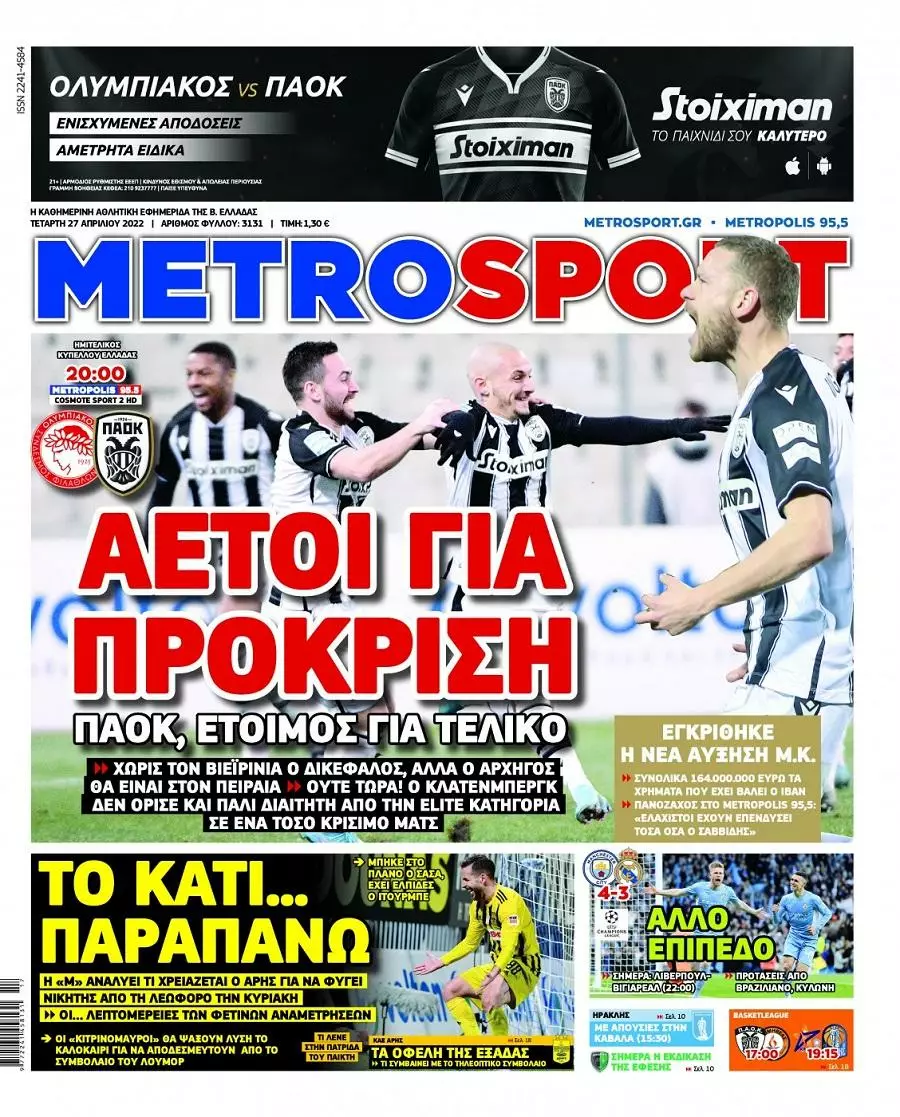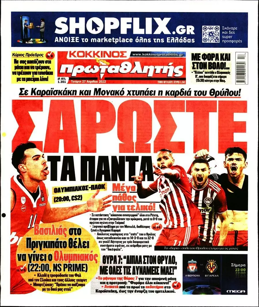 Δείτε τα πρωτοσέλιδα των αθλητικών εφημερίδων για σήμερα Τετάρτη 27 Απριλίου του 2022.