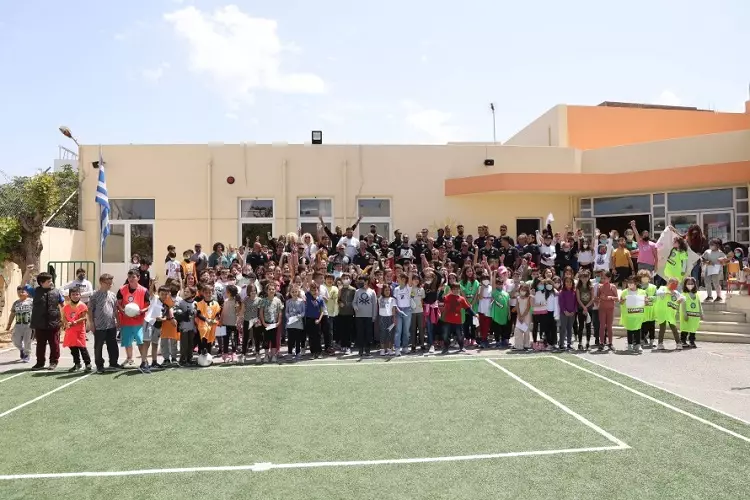 Μια ανεπανάληπτη εμπειρία για όλα τα παιδιά, τα οποία μέσα σε λίγες μέρες είδαν το τσιμεντένιο έδαφος της αυλής του σχολείου να μετατρέπεται σε αγωνιστικό χώρο ποδοσφαιρικού γηπέδου και φυσικά τα ινδάλματά τους να είναι εκεί για να τους χαρίσουν τις πρώτες ποδοσφαιρικές στιγμές!