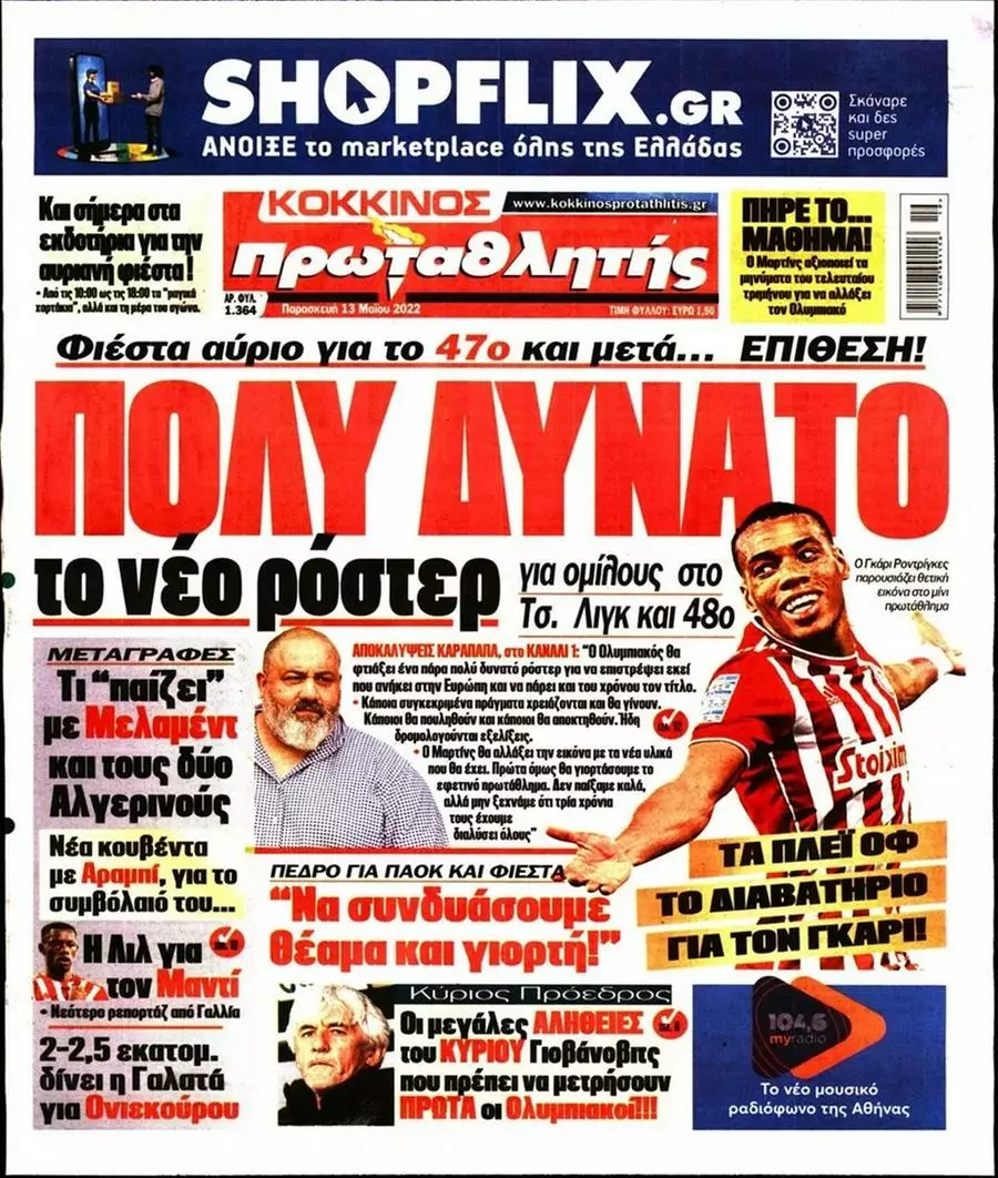HOT NEWS ΕΞ ΑΝΑΒΟΛΗΣ Α1 ΤΕΛΟΣ Ο ΝΤΑΜΠΙΖΑΣ ΚΥΠΕΛΛΟ ΕΠΣΗ ΟΡΙΣΜΟΣ Ο ΜΑΤΕΟ ΧΑΙΝΤΙΝΙ MVP ΤΗΣ 7ΗΣ ΑΓΩΝΙΣΤΙΚΗΣ ΟΙ ΔΙΑΙΤΗΤΕΣ ΣΤΟΥΣ ΑΓΩΝΕΣ ΤΟΥ ΣΚ ΕΦΗΜΕΡΙΔΕΣΚΥΡΙΕΣ ΕΙΔΗΣΕΙΣ Τα πρωτοσέλιδα των αθλητικών εφημερίδων (13/05) Δημοσιογραφικό Τμήμα 13/05/2022 - 09:11 FacebookTwitterWhatsAppLinkedinEmailΤυπώνωCopy URL Δείτε τα πρωτοσέλιδα των αθλητικών εφημερίδων για σήμερα Παρασκευή 13 Μαΐου του 2022. ΔΙΑΒΑΣΤΕ ΕΠΙΣΗΣ: Κόροιβος-Δόξα Ηρακλείου 4-1: Τα highlights του αγώνα (vid) Για την επιστροφή στις νίκες ο ΠΟΑ Β’ Δεν πτοείται η Θέρισσος – Έτοιμη για ΠΟΑ Β’ Αποδεκατισμένα ενόψει ΠΑΟΚ τα Δειλινά ΕΠΣΗ: Οι διαιτητές στους αγώνες του σαββατοκύριακου (01-02/11) Έτοιμος για Ρούβα ο Αλμυρός ΡΟΗ ΕΙΔΗΣΕΩΝ ΚΟΡΟΙΒΟΣ Κόροιβος-Δόξα Ηρακλείου 4-1: Τα highlights του αγώνα (vid) Δημοσιογραφικό Τμήμα 31/10/2025 23:46 ΠΟΑ Β Για την επιστροφή στις νίκες ο ΠΟΑ Β’ Πολυχρόνης Αγγελάκης 31/10/2025 23:00 ΘΕΡΙΣΟΣ Δεν πτοείται η Θέρισσος – Έτοιμη για ΠΟΑ Β’ Πολυχρόνης Αγγελάκης 31/10/2025 22:40 ΠΑΛΙΑΝΗ Φρ. Ποτηράκης: «Πρέπει να είμαστε 100% συγκεντρωμένοι και πειθαρχημένοι απέναντι στη Φαιστό» Πολυχρόνης Αγγελάκης 31/10/2025 22:20 ΑΓ. ΒΑΡΒΑΡΑ Θ. Πρίφτης: «Θέλουμε την πρώτη μας νίκη για να πάρουμε ψυχολογία» Δημοσιογραφικό Τμήμα 31/10/2025 22:01 ΡΩΜΑΝΟΣ Κ. Γιαννακίδης: «Δύσκολο ματς με τον Εργοτέλη, αλλά θα πάμε να διεκδικήσουμε βαθμούς» Πολυχρόνης Αγγελάκης 31/10/2025 22:00 ΠΑΛΙΑΝΗ Προπόνηση και μετά… τραπέζι από Ποτηράκη και Γιαπεντζάκη στη Παλιανή Πολυχρόνης Αγγελάκης 31/10/2025 21:59 Όλες οι ειδήσεις ΔΗΜΟΦΙΛΗ ΔΕΙΛΙΝΑ Αποδεκατισμένα ενόψει ΠΑΟΚ τα Δειλινά ΔΙΑΙΤΗΣΙΑ ΕΠΣΗ: Οι διαιτητές στους αγώνες του σαββατοκύριακου (01-02/11) ΑΛΜΥΡΟΣ Έτοιμος για Ρούβα ο Αλμυρός Α1 ΕΠΣΗ Ορίστηκαν τα εξ’ αναβολής παιχνίδια στην Α1 ΕΠΣΗ ΑΛΜΥΡΟΣ Πρόστιμο 500 ευρώ στον Αλμυρό λόγω «Μπρούτζου»