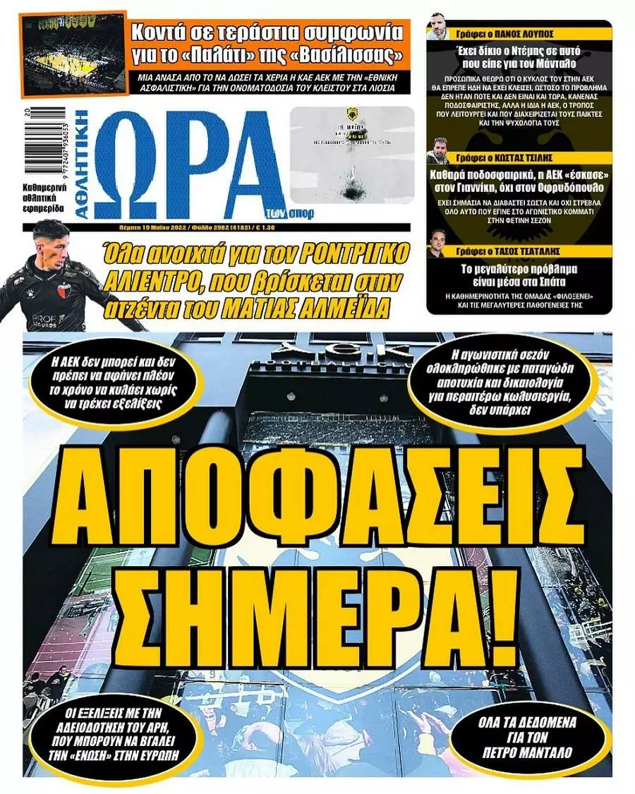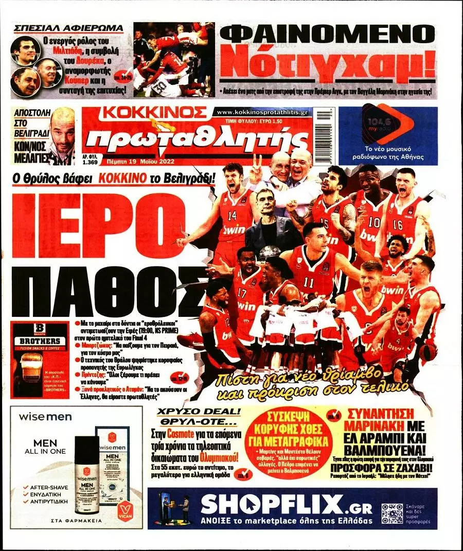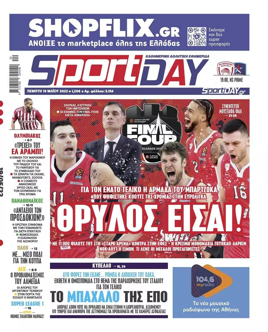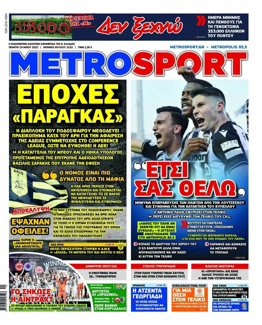 Δείτε τα πρωτοσέλιδα των αθλητικών εφημερίδων για σήμερα Πέμπτη 19 Μαΐου του 2022.