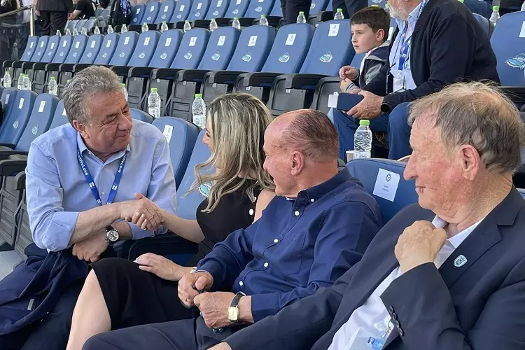 Ο Περιφερειάρχης, που σε κάθε ευκαιρία δείχνει πως λατρεύει το ποδόσφαιρο, άδραξε της ευκαιρίας και παρακολουθεί το μεγάλο παιχνίδι στην πρωτεύουσα. Παράλληλα, ο ίδιος είχε την ευκαιρία να συνομιλήσει και με έναν από τους κορυφαίους Έλληνες ποδοσφαιριστές στην ιστορία του ποδοσφαίρου, τον Μίμη Δομάζο, αλλά και τον Θρύλο του ΠΑΟΚ Σταύρο Σαράφη.