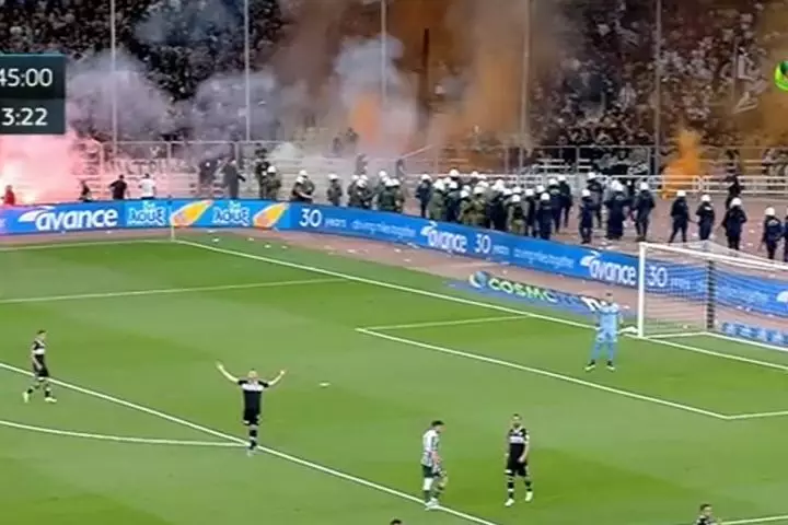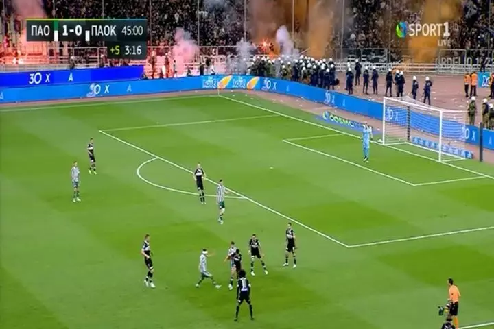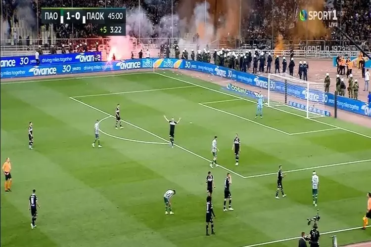Οι οπαδοί του ΠΑΟΚ μπήκαν στον αγωνιστικό χώρο στις καθυστερήσεις του πρώτο ημίχρονου και ήρθαν σε σύγκρουση με αστυνομικές δυνάμεις στον περιβάλλοντα χώρο του γηπέδου.