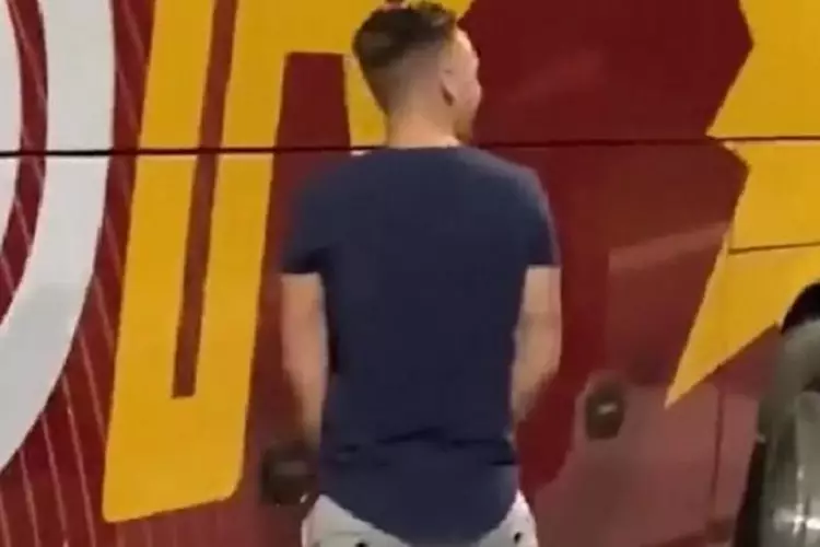 Δύο νεαροί που βρέθηκαν στο ξενοδοχείο, όπου διαμένει η Ρόμα στην αλβανική πρωτεύουσα, έκαναν την ανάγκη τους στο λεωφορείο των «τζιαλορόσι», όπως φαίνεται και σε βίντεο που κυκλοφορεί στα μέσα κοινωνικής δικτύωσης.