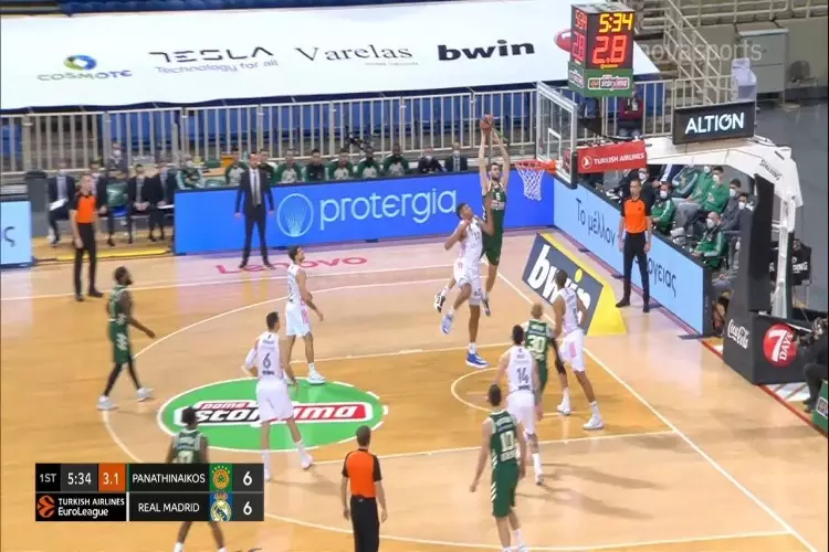 Δύο τάπες, ένα κάρφωμα και ένα ακόμα πιο εντυπωσιακό κάρφωμα επιφύλασε ο Γιώργος Παπαγιάννης στα πρώτα λεπτά του αγώνα κόντρα στην Ρεάλ.