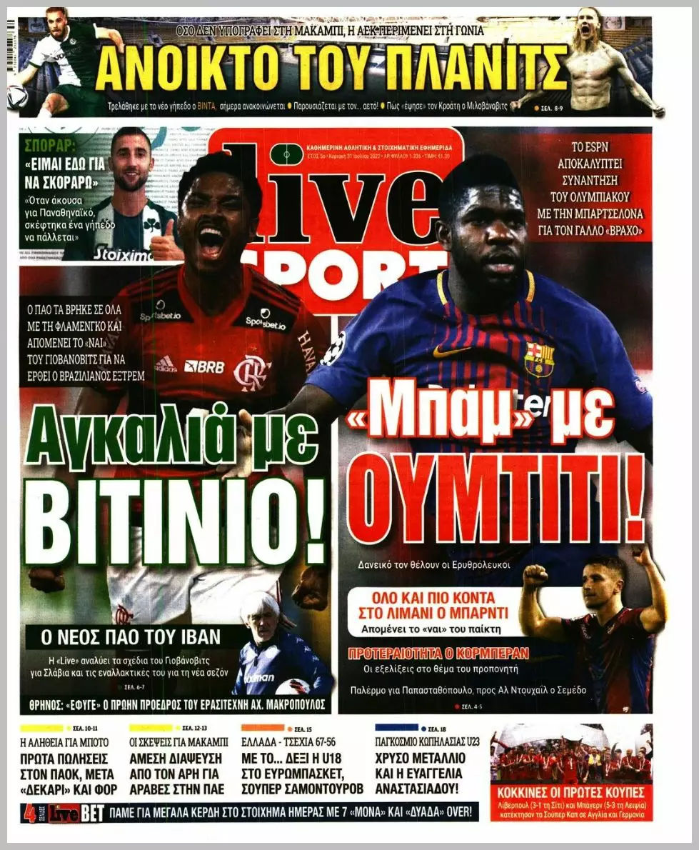HOT NEWS ΜΑΤΣΑΡΑ ΡΩΜΑΝΟΣ-ΧΕΡΣΟΝΗΣΟΣ ΑΠΟΤΕΛΕΣΜΑΤΑ ΣΑΒΒΑΤΟΥ ΜΕΓΑΛΟ ΔΙΠΛΟ ΑΝΘΕΣΤΙΩΝ ΝΙΚΗ Κ15 ΟΦΗ ΕΦΗΜΕΡΙΔΕΣΚΥΡΙΕΣ ΕΙΔΗΣΕΙΣ Τα αθλητικά πρωτοσέλιδα της ημέρας (31/7) Κώστας Παπαδόπουλος 31/07/2022 - 09:00 FacebookTwitterWhatsAppLinkedinEmailΤυπώνωCopy URL Διαβάστε όσα γράφουν τα πρωτοσέλιδα των αθλητικών εφημερίδων σε Αθήνα και Θεσσαλονίκη. ΔΙΑΒΑΣΤΕ ΕΠΙΣΗΣ: «Λευκή» ισοπαλία στα Ανώγεια – Αετός και Αγία Βαρβάρα έμειναν στο 0-0 Ο Ζαφείρης λυτρωτής στο 93’ – Νίκη για τον Μοχό απέναντι στον Ρούβα Πήρε το ντέρμπι με Καϊμακαμούδη ο ΠΟΑ! LIVE οι αγώνες της Κυριακής (19/10) Τα αποτελέσματα του Σαββάτου (18/10) και το πρόγραμμα της Κυριακής (19/10) Ρωμανός-Χερσόνησος 3-3: Τα highlights του αγώνα (vid) ΡΟΗ ΕΙΔΗΣΕΩΝ Γ ΕΘΝΙΚΗ Γ’ Εθνική: Νικητής στο ντέρμπι ο ΠΟΑ, πέμπτη ήττα για τον Γρανίτη Δημήτρης Γιγουρτσής 19/10/2025 18:15 ΑΕΤΟΣ ΑΝΩΓΕΙΩΝ «Λευκή» ισοπαλία στα Ανώγεια – Αετός και Αγία Βαρβάρα έμειναν στο 0-0 Πολυχρόνης Αγγελάκης 19/10/2025 18:15 ΜΟΧΟΣ Ο Ζαφείρης λυτρωτής στο 93’ – Νίκη για τον Μοχό απέναντι στον Ρούβα Πολυχρόνης Αγγελάκης 19/10/2025 18:09 ΠΟΑ Πήρε το ντέρμπι με Καϊμακαμούδη ο ΠΟΑ! Δημήτρης Γιγουρτσής 19/10/2025 17:59 ΝΕΟΣ ΗΡΟΔΟΤΟΣ Πέρασε από τους Βώρους ο Νέος Ηρόδοτος Μάνος Φουστανάκης 19/10/2025 17:43 ΜΟΙΡΕΣ Παρακολουθούν το Φαιστός – Νεός Ηρόδοτος Κυριακάκης, Λεκάκης και Μαρκουλάκης Μάνος Φουστανάκης 19/10/2025 16:32 ΜΙΚΤΕΣ Μικτή Κ16: Οι κλήσεις για το φιλικό με την Κ17 του ΟΦΗ Δημήτρης Γιγουρτσής 19/10/2025 15:52 Όλες οι ειδήσεις ΔΗΜΟΦΙΛΗ LIVE LIVE οι αγώνες της Κυριακής (19/10) Α1 ΕΠΣΗ Τα αποτελέσματα του Σαββάτου (18/10) και το πρόγραμμα της Κυριακής (19/10) ΡΩΜΑΝΟΣ Ρωμανός-Χερσόνησος 3-3: Τα highlights του αγώνα (vid) ΧΕΡΣΟΝΗΣΟΣ Μ. Σηφάκης: «Η ομάδα μου έδειξε πως είναι για μεγάλα πράγματα φέτος» ΜΟΙΡΕΣ Από τις Μοίρες στη Θράκη ο Γιώργος Ζωγραφάκης!