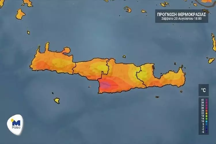 Παρακολουθείστε στο παρακάτω βίντεο την πρόβλεψη του καιρού, στην Κρήτη για σήμερα Σάββατο 20 Αυγούστου από το meteo.