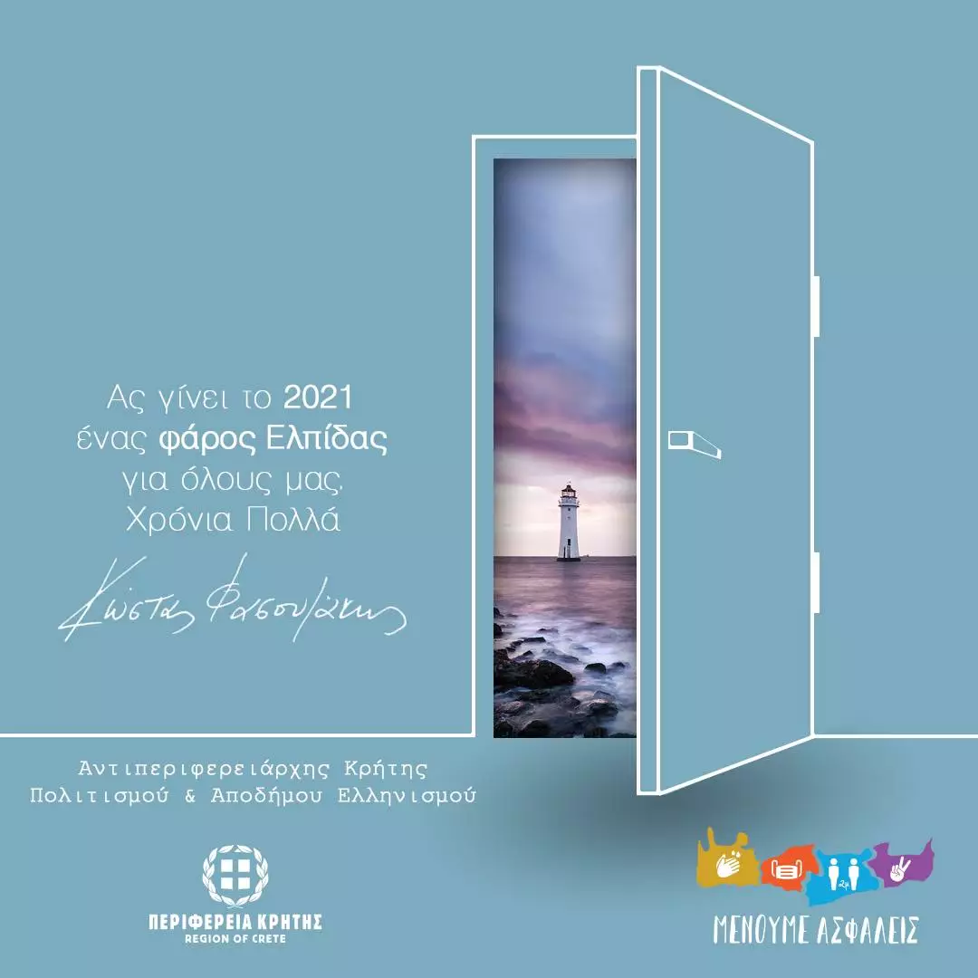 Ευχές για ένα καλύτερο 2021 έστειλε ο Αντιπεριφερειάρχης Κρήτης Πολιτισμού και Απόδημου Ελληνισμού Κώστας Φασουλάκης.