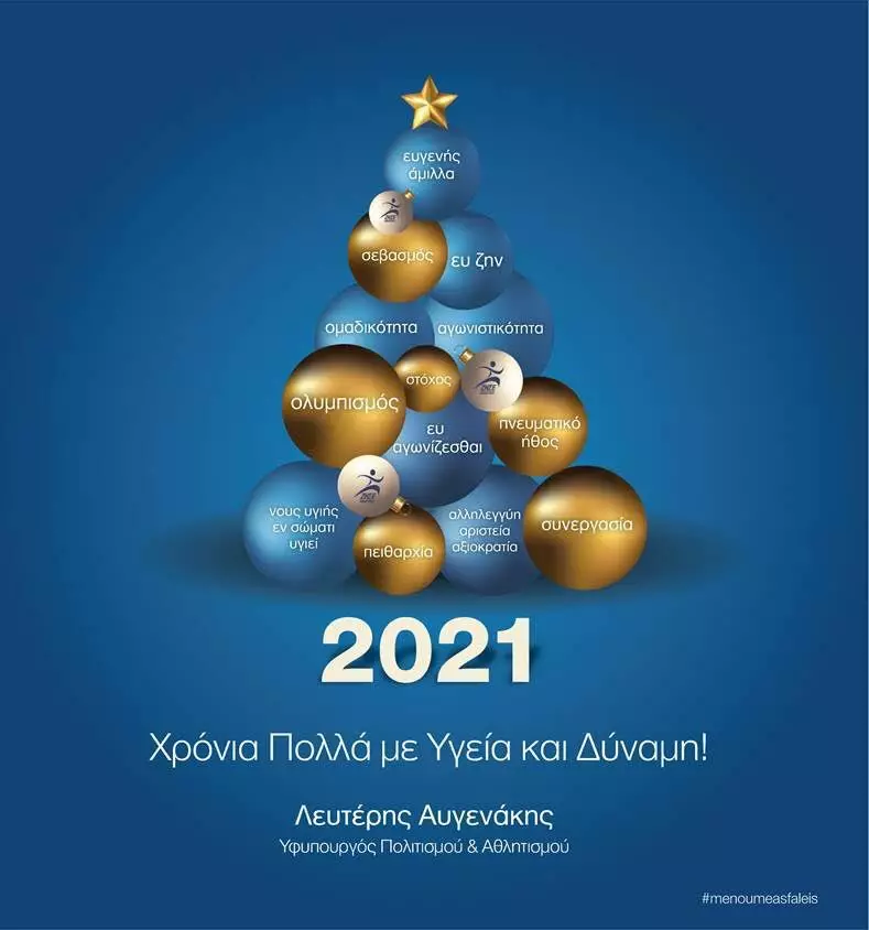 Ο Υφυπουργός Αθλητισμού, Λευτέρης Αυγενάκης, έστειλε το δικό του Χριστουγεννιάτικο μήνυμα στον κόσμο, με μία φωτογραφία που απεικονίζει ένα ιδιαίτερο Χριστουγεννιάτικο δέντρο.