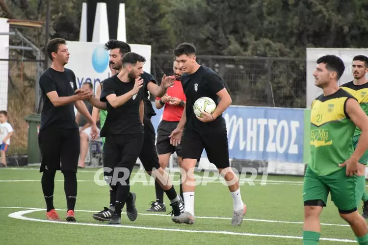 Πιο συγκεκριμένα το 1-0 έκανε ο Κουράκης, ενώ ο ίδιος παίκτης λίγα λεπτά αργότερα αστόχησε σε πέναλτι. Ο Κουτσογιαννάκης στην συνέχεια έκανε το 0-2, ενώ ο Κουράκης κατάφερε να κάνει το 0-3 και το 0-4. Πριν βγει το ημίχρονο ο Μεταξάκης κατάφερε να κάνει το 5-0.