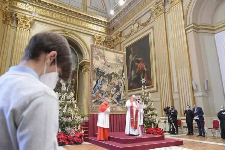 Λόγω κορωνοϊού το χριστουγεννιάτικο μήνυμά του ο Πάπας το διάβασε σε εσωτερική αίθουσα του Αποστολικού Μεγάρου του Βατικανού.
