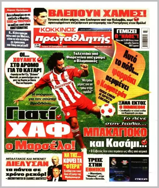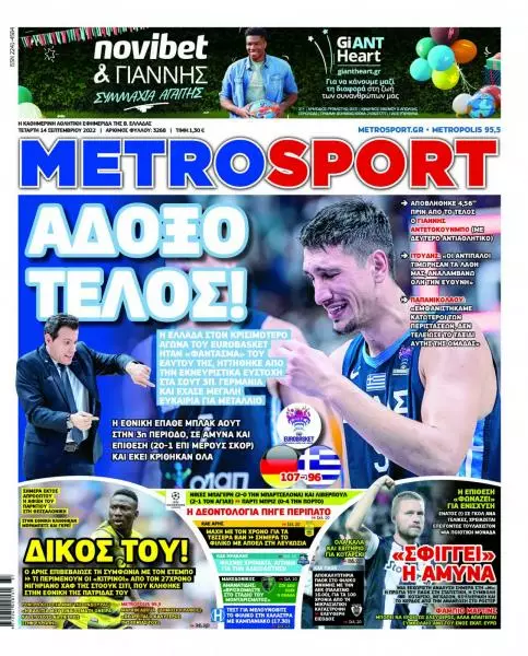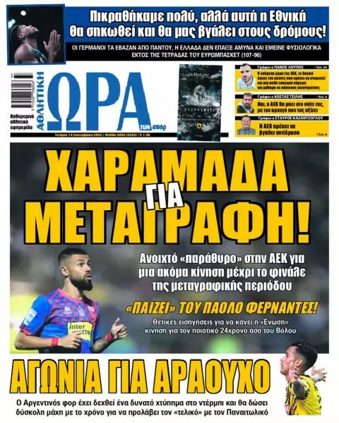 Τα αθλητικά πρωτοσέλιδα της Τετάρτης (14/9)