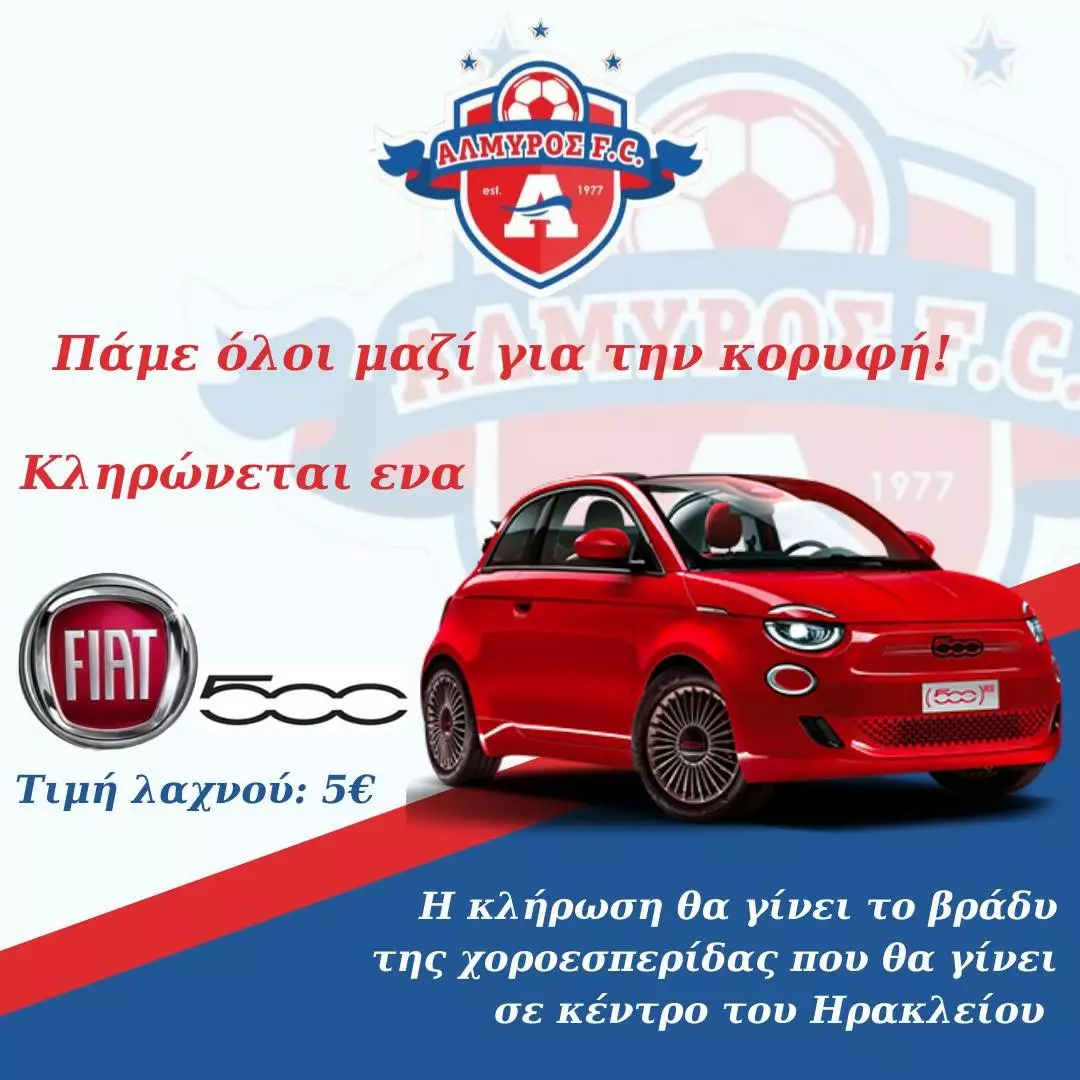 Αναλυτικά η ανακοίνωση: «Αγαπητοί φίλαθλοι, είμαστε στην ευχάριστη θέση να σας ανακοινώσουμε τη μεγάλη κλήρωση που διοργανώνει η ομάδα μας για ένα αυτοκίνητο Fiat 500. Η κλήρωση έχει ήδη ξεκινήσει και θα ολοκληρωθεί στη μεγάλη χοροεσπερίδα που θα πραγματοποιηθεί σε κέντρο του Ηρακλείου. ????