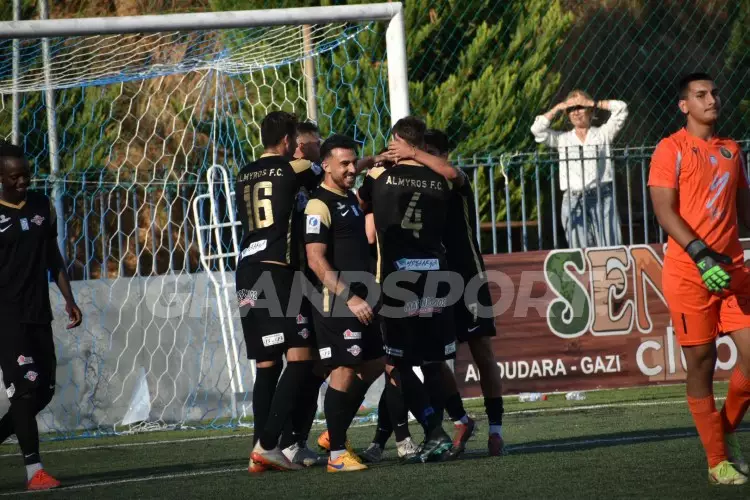 Ο Αλμυρός «ΙΚΤΕΟ ΒΙΣΤΑΚΗ» από το πρώτο λεπτό μπήκε με διάθεση να πάρει τη νίκη, απείλησε με ένα πολύ καλό φάουλ του Φραγκουλάκη στα πρώτα λεπτά, με τον Αλμυρό να φτάνει το γκολ στο 10′. Μετά από κυκλοφορία της μπάλας, ο Μπουρσέλης πάσαρε στον Πιερτζάκομι και εκείνος με ένα δυνατό διαγώνιο σουτ, άνοιξε το σκορ!