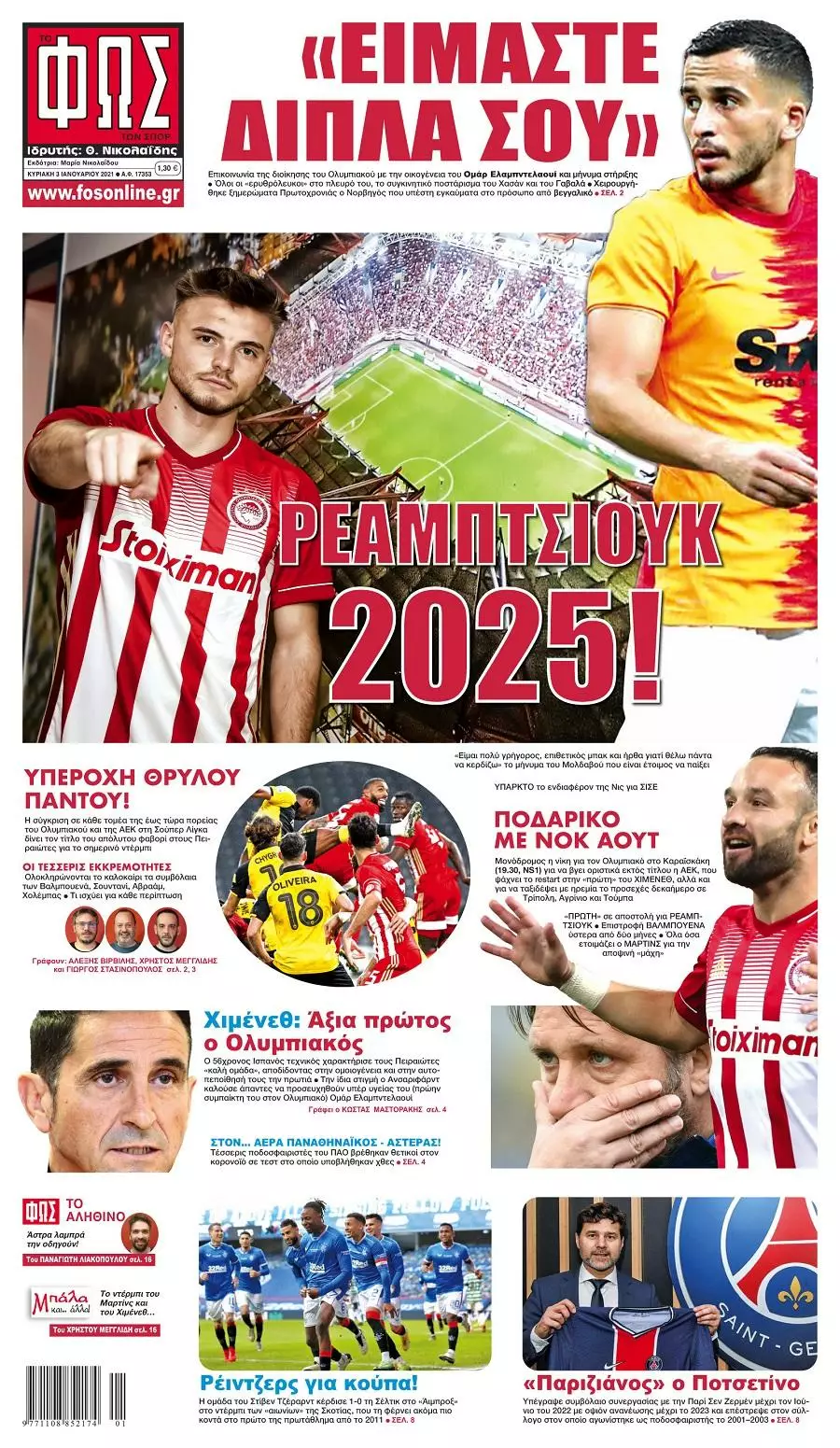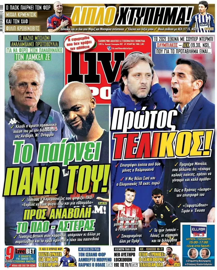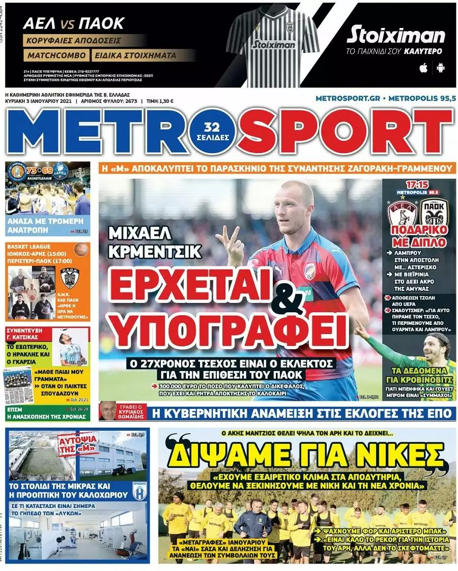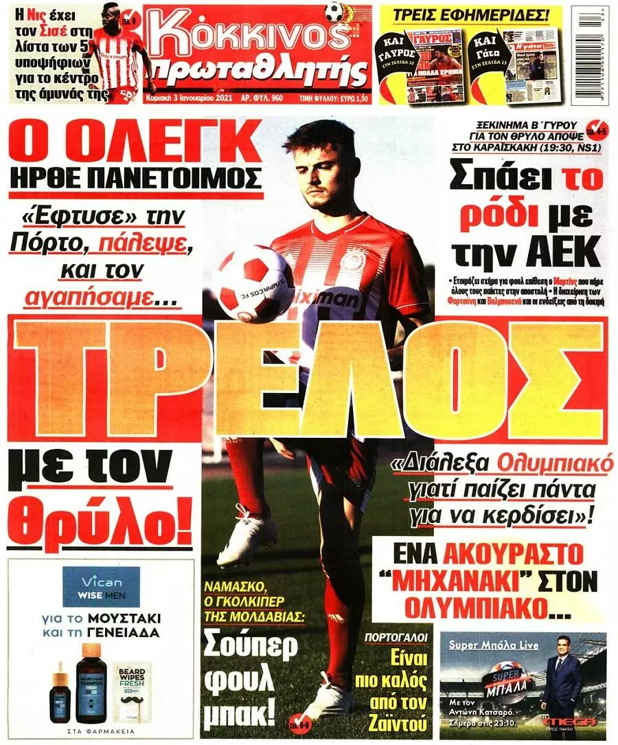 HOT NEWS ΔΙΑΙΤΗΤΕΣ ΤΕΤΑΡΤΗΣ ΕΦΥΓΕ Ο ΓΙΑΝΝΗΣ ΦΛΟΥΡΗΣ Λ. ΚΑΛΟΜΟΙΡΗΣ Κ13 ΓΚΛΑΝΤΜΠΑΧ ΠΕΤΟΥΣΗΣ Κ17 ΕΘΝΙΚΗ ΠΑΡΑΙΤΗΣΗ ΚΟΝΤΑΚΗ ΕΦΗΜΕΡΙΔΕΣΚΥΡΙΕΣ ΕΙΔΗΣΕΙΣ Τα αθλητικά πρωτοσέλιδα της ημέρας (03/01) Δημοσιογραφικό Τμήμα 03/01/2021 - 09:25 FacebookTwitterWhatsAppLinkedin&body=https://grandsport.gr/23377-ta-athlitika-protoselida-tis-imeras-03-01/" title="Email" >EmailΤυπώνωCopy URL Διαβάστε όσα γράφουν τα αθλητικά πρωτοσέλιδα της Κυριακής (03/01), σε Αθήνα και Θεσσαλονίκη. ΔΙΑΒΑΣΤΕ ΕΠΙΣΗΣ: Κόροιβος: «Να πετύχουμε την 3η νίκη σε ισάριθμα παιχνίδια στο πρωτάθλημα» ΑΟΤ: «Ένα ακόμη σημαντικό παιχνίδι, όλοι εκεί» ΟΦΗ: Μέσα ο Θεοδοσουλάκης, αποχώρησε ο Σενγκέλια Θλίψη στο Ηρακλειώτικο ποδόσφαιρο: Έφυγε από τη ζωή ο Γιάννης Φλουρής Υπέβαλε την παραίτηση του ο Κοντάκης – Δεν έγινε δεκτή από τα Δειλινά ΕΠΣΗ: Οι παρατηρητές στους αγώνες της Τετάρτης (15/10) ΡΟΗ ΕΙΔΗΣΕΩΝ ΚΟΡΟΙΒΟΣ Κόροιβος: «Να πετύχουμε την 3η νίκη σε ισάριθμα παιχνίδια στο πρωτάθλημα» Μάνος Φουστανάκης 15/10/2025 13:28 ΑΟΤ ΑΟΤ: «Ένα ακόμη σημαντικό παιχνίδι, όλοι εκεί» Δημήτρης Γιγουρτσής 15/10/2025 13:15 ΟΦΗ ΟΦΗ: Μέσα ο Θεοδοσουλάκης, αποχώρησε ο Σενγκέλια Μάνος Φουστανάκης 15/10/2025 12:59 ΔΑΜΑΣΤΑ Εκτός μητρώου η Δαμάστα – Κίνδυνος αναβολών των επόμενων αγώνων Δημήτρης Γιγουρτσής 15/10/2025 12:45 ΟΦΗ Μάχες με τον Παναιτωλικό για τις «Κ» του ΟΦΗ Δημήτρης Γιγουρτσής 15/10/2025 12:37 ΓΙΟΥΧΤΑΣ Β Με απουσίες αλλά αποφασισμένος ο Γιούχτας Β’ ενόψει Ασημίου Μάνος Φουστανάκης 15/10/2025 12:31 ΧΕΡΣΟΝΗΣΟΣ Προς τέλη Οκτώβρη και αρχές Νοέμβρη τα ντέρμπι της Χερσονήσου με ΑΟΤ και ΠΑΟΚρουσώνα Μάνος Φουστανάκης 15/10/2025 12:11 Όλες οι ειδήσεις ΔΗΜΟΦΙΛΗ ΕΠΣ - ΕΠΟ Θλίψη στο Ηρακλειώτικο ποδόσφαιρο: Έφυγε από τη ζωή ο Γιάννης Φλουρής ΔΕΙΛΙΝΑ Υπέβαλε την παραίτηση του ο Κοντάκης – Δεν έγινε δεκτή από τα Δειλινά ΕΠΣ - ΕΠΟ ΕΠΣΗ: Οι παρατηρητές στους αγώνες της Τετάρτης (15/10) ΠΑΡΑΣΚΗΝΙΟ Αύριο το τελευταίο αντίο στον Γιάννη Φλουρή ΜΙΚΤΕΣ Μεγάλη συμμετοχή στις προπονήσεις προεπιλογής Κ14 και Κ16 της ΕΠΣΗ