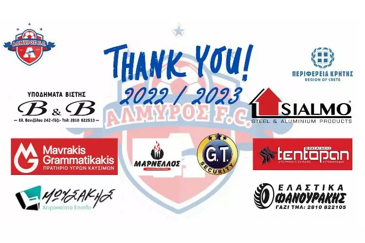 Η ανακοίνωση αναφέρει: «Ο Αλμυρός Γαζίου καλωσορίζει και παρουσιάζει τους χορηγούς που κοσμούν την αγωνιστική εμφάνιση της ομάδας μας για την ποδοσφαιρική χρονιά 2022/2023.