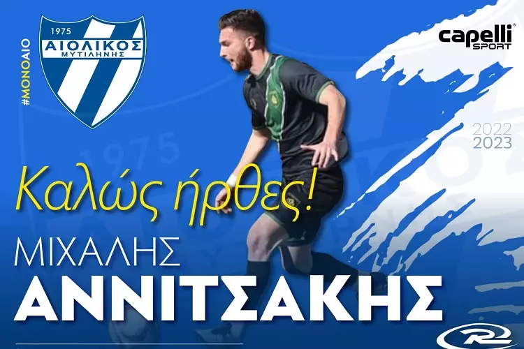 Η σχετική ενημέρωση: «Η διοίκηση του ΑΕΠΣ Αιολικός ανακοινώνει την απόκτηση του ποδοσφαιριστή Μιχάλη Αννιτσάκη. Ο 24χρονος (γενν. 5/10/1998) κεντρικός αμυντικός αγωνίστηκε κατά τις δύο προηγούμενες αγωνιστικές περιόδους με τον Ατσαλένιο στη Γ’ Εθνική, έχοντας πέρυσι 20 συμμετοχές και 3 γκολ σε πρωτάθλημα και Κύπελλο Ελλάδας.