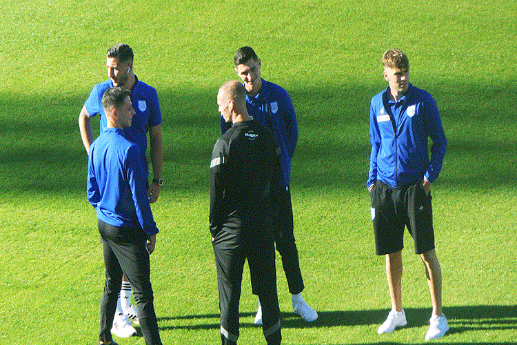Στην αναγνωστική βόλτα στον αγωνιστικό χώρο πριν το ζέσταμα ο νεαρός κεντρικός αμυντικός του ΟΦΗ, είχε αρκετή ώρα συζήτηση με τους Λώλη και Λιάσο, αφού γνωρίζονται αρκετά καλά.