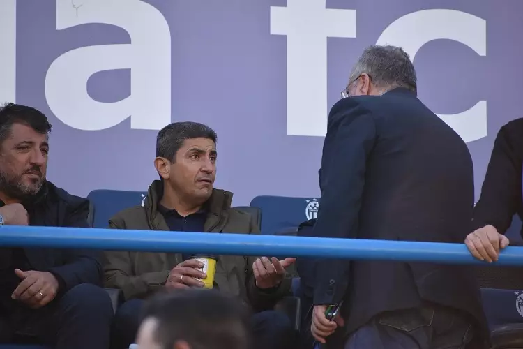 Δίπλα του βρισκόταν ο πρόεδρος της Super League 2, Λεωνίδας Λεουτσάκος, ο οποίος πήγε να παρακολουθήσει την Κηφισιά που βρίσκεται και στο πρωτάθλημα που διοικεί…