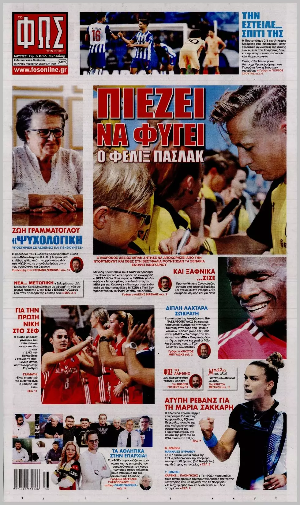 Διαβάστε όσα γράφουν τα πρωτοσέλιδα των αθλητικών εφημερίδων σε Αθήνα και Θεσσαλονίκη.