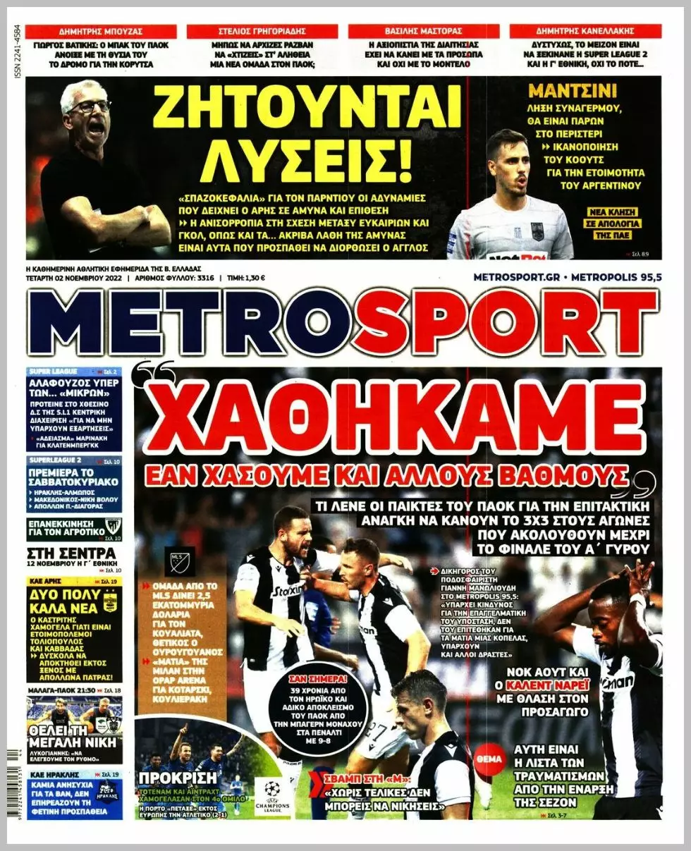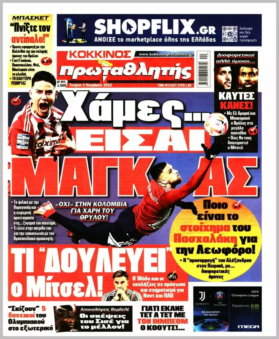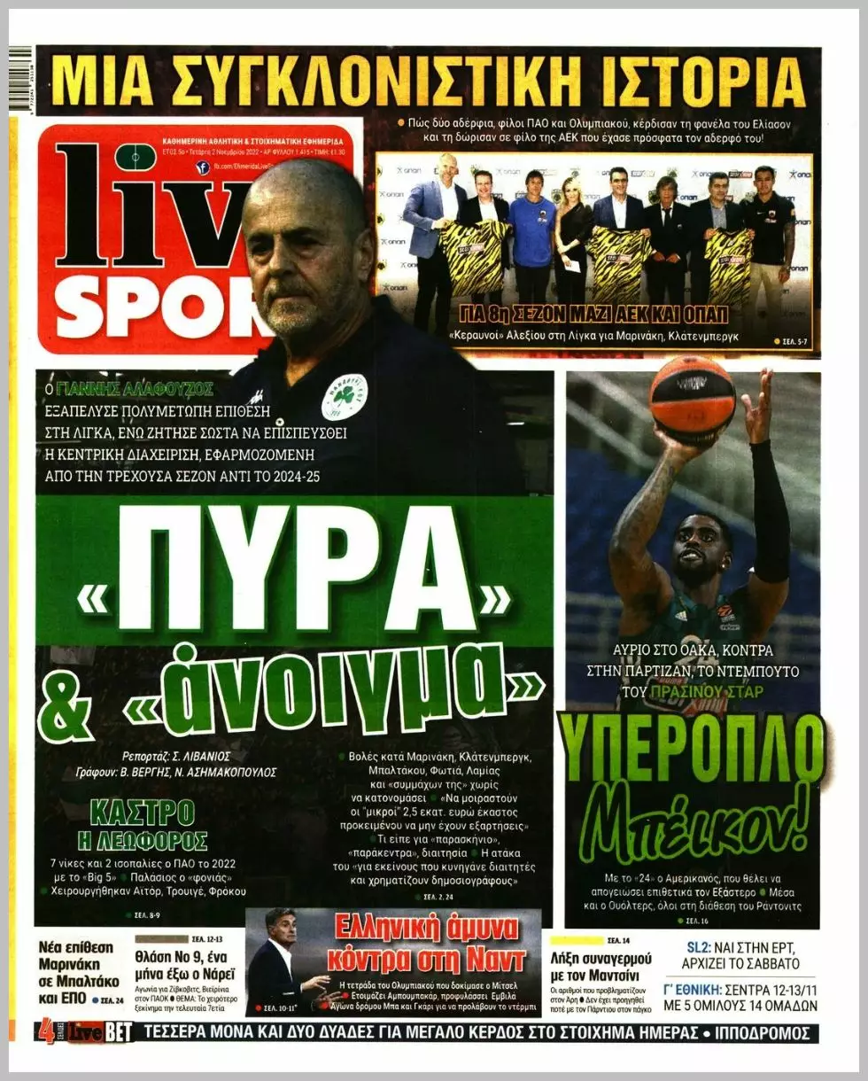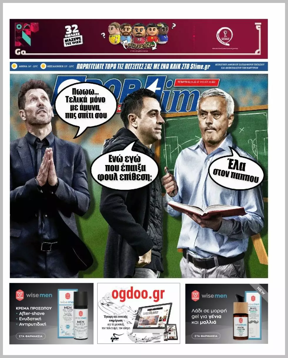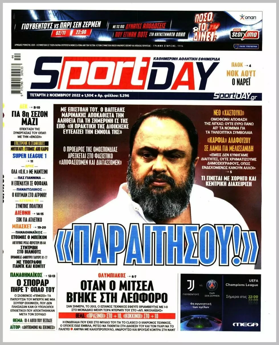 Τα αθλητικά πρωτοσέλιδα της Τετάρτης (2/11)