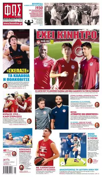 Τα αθλητικά πρωτοσέλιδα της Πέμπτης (3/11)
