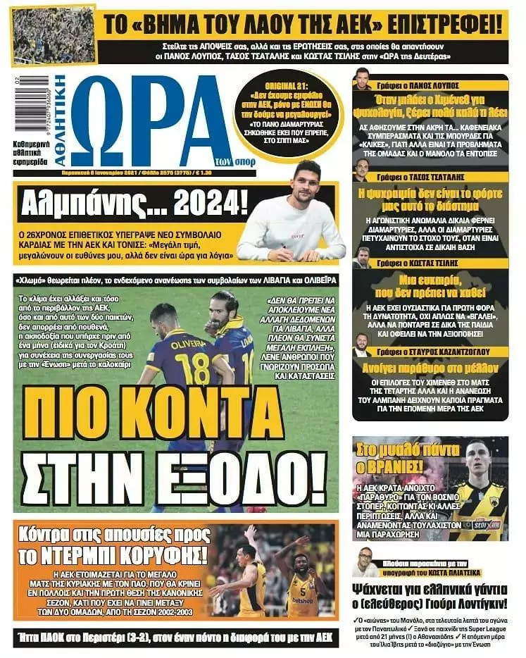 HOT NEWS ΣΥΝΕΧΙΖΕΙ ΠΡΩΤΟΣ Ο ΕΡΓΟΤΕΛΗΣ ΕΠΙΒΛΗΤΙΚΟΣ ΠΟΑ ΑΠΟΤΕΛΕΣΜΑΤΑ ΣΑΒΒΑΤΟΚΥΡΙΑΚΟΥ ΕΚΛΕΙΣΕ ΚΟΝΤΗ Ο ΜΠΟΥΣΗΣ ΕΠΙΣΗΜΑ ΤΕΛΟΣ Ο ΡΑΣΤΑΒΑΤΣ ΕΦΗΜΕΡΙΔΕΣΚΥΡΙΕΣ ΕΙΔΗΣΕΙΣ Τα αθλητικά πρωτοσέλιδα της ημέρας(08/01) Δημοσιογραφικό Τμήμα 08/01/2021 - 09:13 FacebookTwitterWhatsAppLinkedinEmailΤυπώνωCopy URL Δείτε παρακάτω τα πρωτοσέλιδα των αθλητικών εφημερίδων για σήμερα Παρασκευή 8 Ιανουαρίου του 2021. ΔΙΑΒΑΣΤΕ ΕΠΙΣΗΣ: Ν. Ηρόδοτος-Μοίρες 2-0: Τα γκολ του αγώνα (vid) Λ. Ρουσάκης: «Ήταν μία νίκη που πρέπει να κάνουν οι ομάδες που στοχεύουν τον πρωταθλητισμό» Α2 ΕΠΣΗ: Ξανά στην κορυφή ο Ν. Ηρόδοτος, σημαντικές νίκες για Ζαρό και ΟΦΑ Τα αποτελέσματα στα παιχνίδια του σαββατοκύριακου (25-26/10) Α1 ΕΠΣΗ: Συνεχίζει πρώτος ο Εργοτέλης, σημαντικά διπλά για ΠΑΟΚ και Αλμυρό Σε προχωρημένες επαφές ΟΦΗ και Κόντης – Τα… θέλω του στη στελέχωση του επιτελείου ΡΟΗ ΕΙΔΗΣΕΩΝ ΟΦΗ Υπ’ ατμόν και ο Νίκος Νταμπίζας στον ΟΦΗ – Εκτός συζητήσεων με Χρ. Κόντη! Κώστας Μεταξάκης 26/10/2025 22:38 ΝΕΟΣ ΗΡΟΔΟΤΟΣ Ν. Ηρόδοτος-Μοίρες 2-0: Τα γκολ του αγώνα (vid) Δημήτρης Γιγουρτσής 26/10/2025 22:25 ΡΟΥΒΑΣ Α1 ΕΠΣΗ: Ψηφίστε και αναδείξτε τον MVP της 7ης αγωνιστικής Κώστας Μεταξάκης 26/10/2025 22:17 ΠΑΟΚ Το «ευχαριστώ» του ΠΑΟΚ Δημήτρης Γιγουρτσής 26/10/2025 22:09 ΟΦΗ Ο Μπούσης «έκλεισε» τον Κόντη – Μία ανάσα από τη συμφωνία με τον νέο προπονητή του ΟΦΗ Κώστας Μεταξάκης 26/10/2025 21:34 ΑΣΤΕΡΑΣ ΜΥΡΤΙΑΣ Η αξιέπαινη κίνηση του ΟΦΑ και το ευχαριστώ του Αστέρα Μυρτιάς Δημήτρης Γιγουρτσής 26/10/2025 21:15 ΟΦΑ Λ. Ρουσάκης: «Ήταν μία νίκη που πρέπει να κάνουν οι ομάδες που στοχεύουν τον πρωταθλητισμό» Δημήτρης Γιγουρτσής 26/10/2025 21:01 Όλες οι ειδήσεις ΔΗΜΟΦΙΛΗ Α1 ΕΠΣΗ Τα αποτελέσματα στα παιχνίδια του σαββατοκύριακου (25-26/10) Α1 ΕΠΣΗ Α1 ΕΠΣΗ: Συνεχίζει πρώτος ο Εργοτέλης, σημαντικά διπλά για ΠΑΟΚ και Αλμυρό ΟΦΗ Σε προχωρημένες επαφές ΟΦΗ και Κόντης – Τα… θέλω του στη στελέχωση του επιτελείου ΡΟΥΒΑΣ Α1 ΕΠΣΗ: Ψηφίστε και αναδείξτε τον MVP της 7ης αγωνιστικής ΚΟΡΑΚΑΣ Έσωσε τον βαθμό με «Κόναν» ο Κόρακας