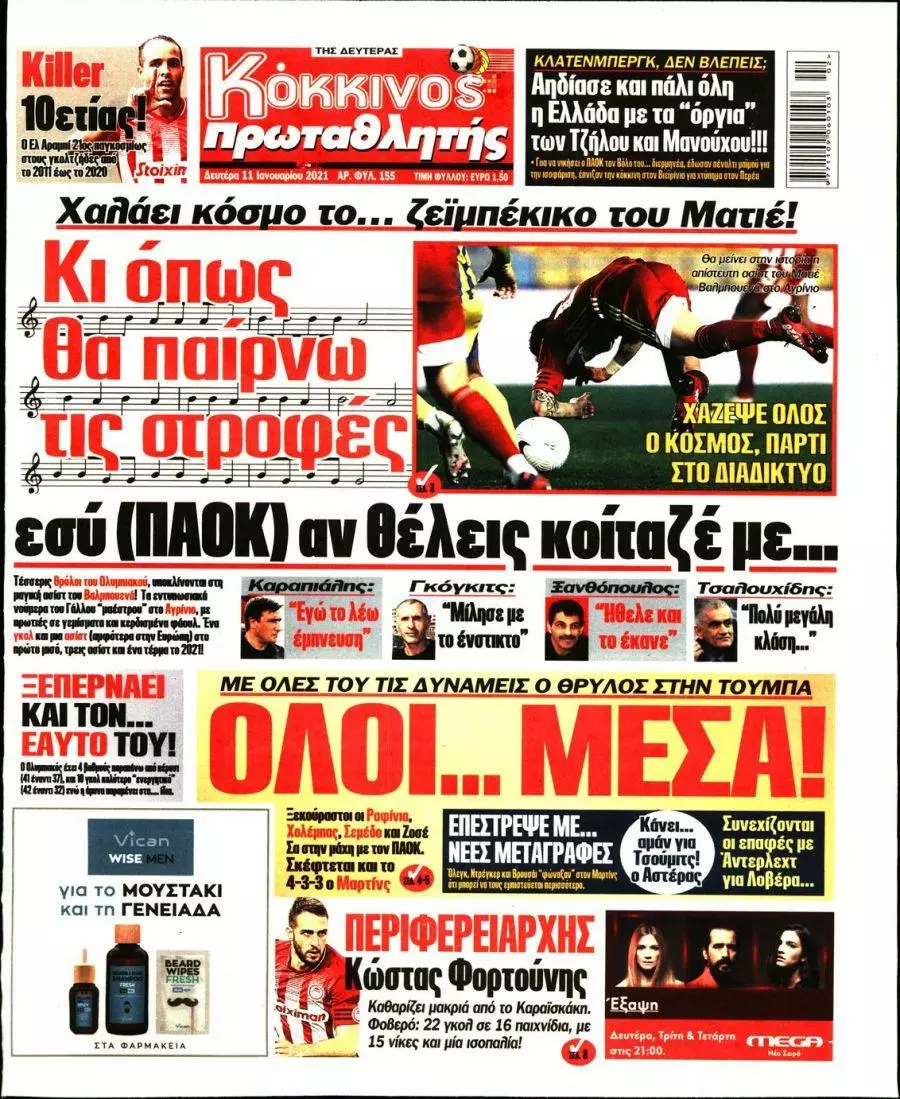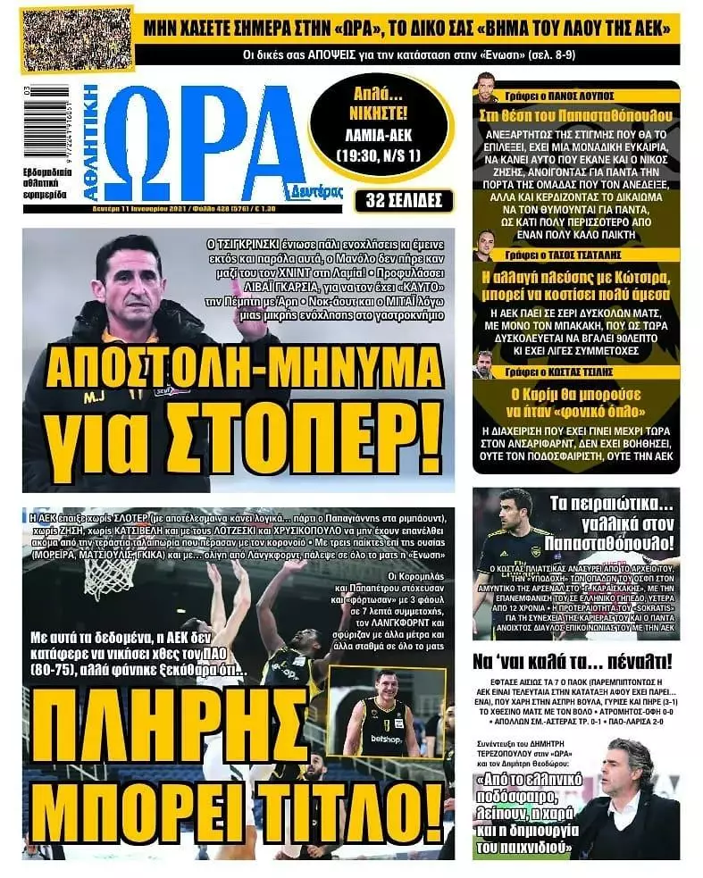 HOT NEWS 3Χ3 ΟΦΗ ΣΤΟ ΚΥΠΕΛΛΟ ΑΠΑΝΤΗΣΗ ΑΟΤ ΕΤΟΙΜΟΣ Ο ΓΙΟΥΧΤΑΣ ΓΙΑ ΜΥΚΟΝΟ ΣΤΟ ΠΑΓΚΡΗΤΙΟ Ο ΚΟΝΤΗΣ ΕΦΗΜΕΡΙΔΕΣΚΥΡΙΕΣ ΕΙΔΗΣΕΙΣ Τα πρωτοσέλιδα των αθλητικών εφημερίδων(11/01) Δημοσιογραφικό Τμήμα 11/01/2021 - 09:00 FacebookTwitterWhatsAppLinkedinEmailΤυπώνωCopy URL Δείτε παρακάτω τα πρωτοσέλιδα των αθλητικών εφημερίδων για σήμερα Δευτέρα 11 Ιανουαρίου! ΔΙΑΒΑΣΤΕ ΕΠΙΣΗΣ: Χωρίς ιδιαίτερα προβλήματα η Δόξα Με δύο επιστροφές και τρεις απουσίες ο Αετός – «Πάμε δυνατά και ότι προκύψει» ΕΠΣΗ: Οι παρατηρητές στους αγώνες της Τετάρτης (29/10) ΕΠΣΗ: Το πρόγραμμα του Σαββατοκύριακου (1-2/11) Β. Κουτσιανικούλης: «Πληγώθηκα από τον τρόπο που έφυγα από τον ΟΦΗ – Μετά τον θάνατο του Παπουτσάκη δεν υπήρχε Εργοτέλης» (vid) Βλέπει ΟΦΗ-Ηρακλής ο Χιώτης ΡΟΗ ΕΙΔΗΣΕΩΝ ΔΟΞΑ ΗΡΑΚΛΕΙΟΥ Χωρίς ιδιαίτερα προβλήματα η Δόξα Δημοσιογραφικό Τμήμα 28/10/2025 22:57 ΑΕΤΟΣ ΑΝΩΓΕΙΩΝ Με δύο επιστροφές και τρεις απουσίες ο Αετός – «Πάμε δυνατά και ότι προκύψει» Δημήτρης Γιγουρτσής 28/10/2025 22:36 ΕΠΣ - ΕΠΟ ΕΠΣΗ: Οι παρατηρητές στους αγώνες της Τετάρτης (29/10) Δημήτρης Γιγουρτσής 28/10/2025 22:24 ΓΑΡΙΠΑ Αναβάλλεται το Π. Ηρόδοτου-Τηγανίτης, παίζουν με Γαρίπα οι «μπλε» Δημήτρης Γιγουρτσής 28/10/2025 22:15 ΤΥΛΙΣΟΣ Α. Μανιούδης: «Το πρόγραμμα θα είναι απαιτητικό, αλλά μπορούμε να ανταπεξέλθουμε» Δημήτρης Γιγουρτσής 28/10/2025 22:04 ΠΟΑ Χ. Κουμάκης: «Μας ενδιαφέρει το Κύπελλο, πάμε να κερδίσουμε» Δημήτρης Γιγουρτσής 28/10/2025 21:46 ΑΣΤΕΡΑΣ ΜΥΡΤΙΑΣ Με δύο σημαντικές επιστροφές ο Αστέρας Μυρτιάς Δημήτρης Γιγουρτσής 28/10/2025 21:27 Όλες οι ειδήσεις ΔΗΜΟΦΙΛΗ Α1 ΕΠΣΗ ΕΠΣΗ: Το πρόγραμμα του Σαββατοκύριακου (1-2/11) ΟΦΗ Β. Κουτσιανικούλης: «Πληγώθηκα από τον τρόπο που έφυγα από τον ΟΦΗ – Μετά τον θάνατο του Παπουτσάκη δεν υπήρχε Εργοτέλης» (vid) ΟΦΗ Βλέπει ΟΦΗ-Ηρακλής ο Χιώτης ΚΟΡΑΚΑΣ Παρελθόν από τον Κόρακα ο Αντ. Μανουσάκης ΜΙΚΤΕΣ Οι κλήσεις της Μικτής Κ14 ΕΠΣΗ για το φιλικό με την Youth ομάδα του Ηροδότου