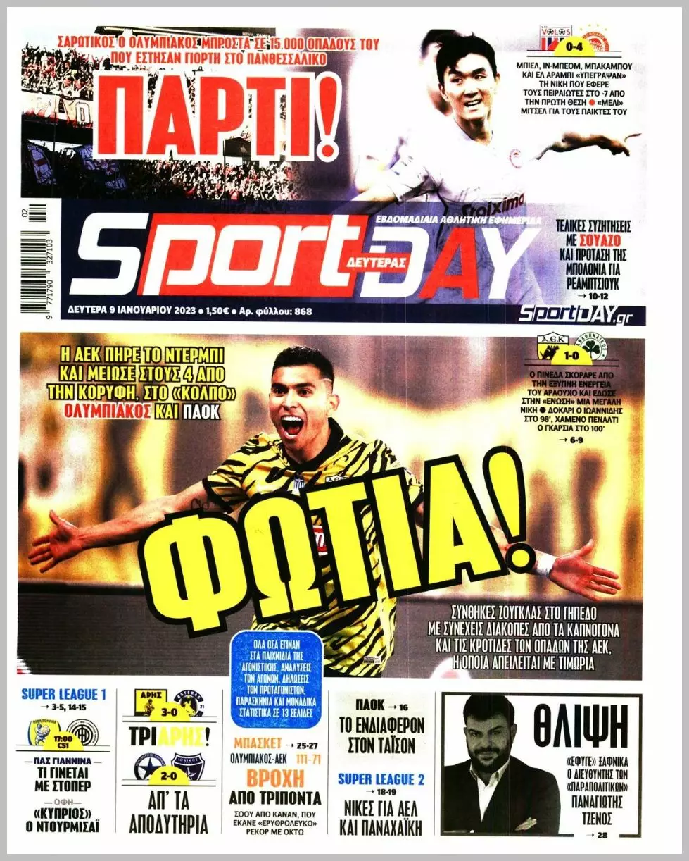 HOT NEWS ΕΠΙΣΗΜΑ ΣΤΟΝ ΟΦΗ Ο ΚΟΝΤΗΣ ΜΠΟΥΣΗΣ: «ΜΟΙΡΑΖΕΤΑΙ ΤΟ ΟΡΑΜΑ ΜΑΣ Ο ΚΟΝΤΗΣ» LIVE ΤΕΤΑΡΤΗΣ ΕΦΗΜΕΡΙΔΕΣΚΥΡΙΕΣ ΕΙΔΗΣΕΙΣ Τα αθλητικά πρωτοσέλιδα της Δευτέρας (9/1) Κώστας Παπαδόπουλος 09/01/2023 - 09:00 FacebookTwitterWhatsAppLinkedinEmailΤυπώνωCopy URL Διαβάστε όσα γράφουν τα πρωτοσέλιδα των αθλητικών εφημερίδων σε Αθήνα και Θεσσαλονίκη. ΔΙΑΒΑΣΤΕ ΕΠΙΣΗΣ: Ντέρμπι με τα όλα του, αλλά χωρίς γκολ στο Τυμπάκι Οι διαιτητές στα παιχνίδια Κ17 και Κ15 του ΟΦΗ ΕΠΣΗ: Οι αλλαγές στους αγώνες του σαββατοκύριακου LIVE οι αγώνες της Τετάρτης (29/10) Βλέπει ΟΦΗ-Ηρακλής ο Χιώτης «Λύγισε» στα πέναλτι και αποχαιρέτησε το Κύπελλο Ερασιτεχνών ο ΠΟΑ ΡΟΗ ΕΙΔΗΣΕΩΝ ΑΟΤ Ντέρμπι με τα όλα του, αλλά χωρίς γκολ στο Τυμπάκι Δημήτρης Γιγουρτσής 29/10/2025 16:54 ΟΦΗ Χ. Κόντης: «Η ομάδα θα αλλάξει τον τρόπο που παίζει, μ’ αρέσει το κυρίαρχο ποδόσφαιρο» Δημήτρης Γιγουρτσής 29/10/2025 16:48 ΟΦΗ Οι διαιτητές στα παιχνίδια Κ17 και Κ15 του ΟΦΗ Δημήτρης Γιγουρτσής 29/10/2025 16:32 ΕΠΣ - ΕΠΟ ΕΠΣΗ: Οι αλλαγές στους αγώνες του σαββατοκύριακου Δημήτρης Γιγουρτσής 29/10/2025 15:45 ΠΟΑ «Λύγισε» στα πέναλτι και αποχαιρέτησε το Κύπελλο Ερασιτεχνών ο ΠΟΑ Δημήτρης Γιγουρτσής 29/10/2025 15:40 ΑΟΤ Από νωρίς στο Τυμπάκι ο Μανώλης Σουτζής Δημήτρης Γιγουρτσής 29/10/2025 14:54 ΑΟΤ Live Streaming: ΑΟΤ-Χερσόνησος Δημοσιογραφικό Τμήμα 29/10/2025 14:44 Όλες οι ειδήσεις ΔΗΜΟΦΙΛΗ LIVE LIVE οι αγώνες της Τετάρτης (29/10) ΟΦΗ Βλέπει ΟΦΗ-Ηρακλής ο Χιώτης ΠΟΑ «Λύγισε» στα πέναλτι και αποχαιρέτησε το Κύπελλο Ερασιτεχνών ο ΠΟΑ Α1 ΕΠΣΗ Α1 ΕΠΣΗ: Σούπερ παιχνίδι στη Χερσόνησο, αναμετρήσεις σε Κρουσώνα και Ελιά ΟΦΗ Αποχωρεί από τον ΟΦΗ ο Αντώνης Λυκούρης